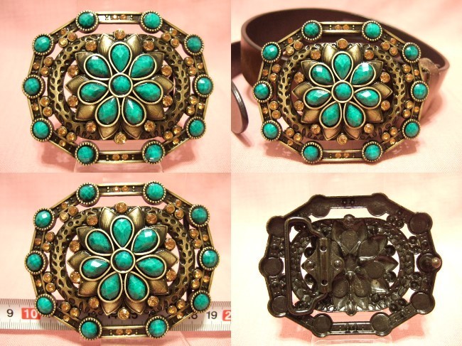 | 商品名 | 横浜最新 ラインストーン金♪魅惑のターコイズ風キラキラバックル 楕円 メンズレディース |
