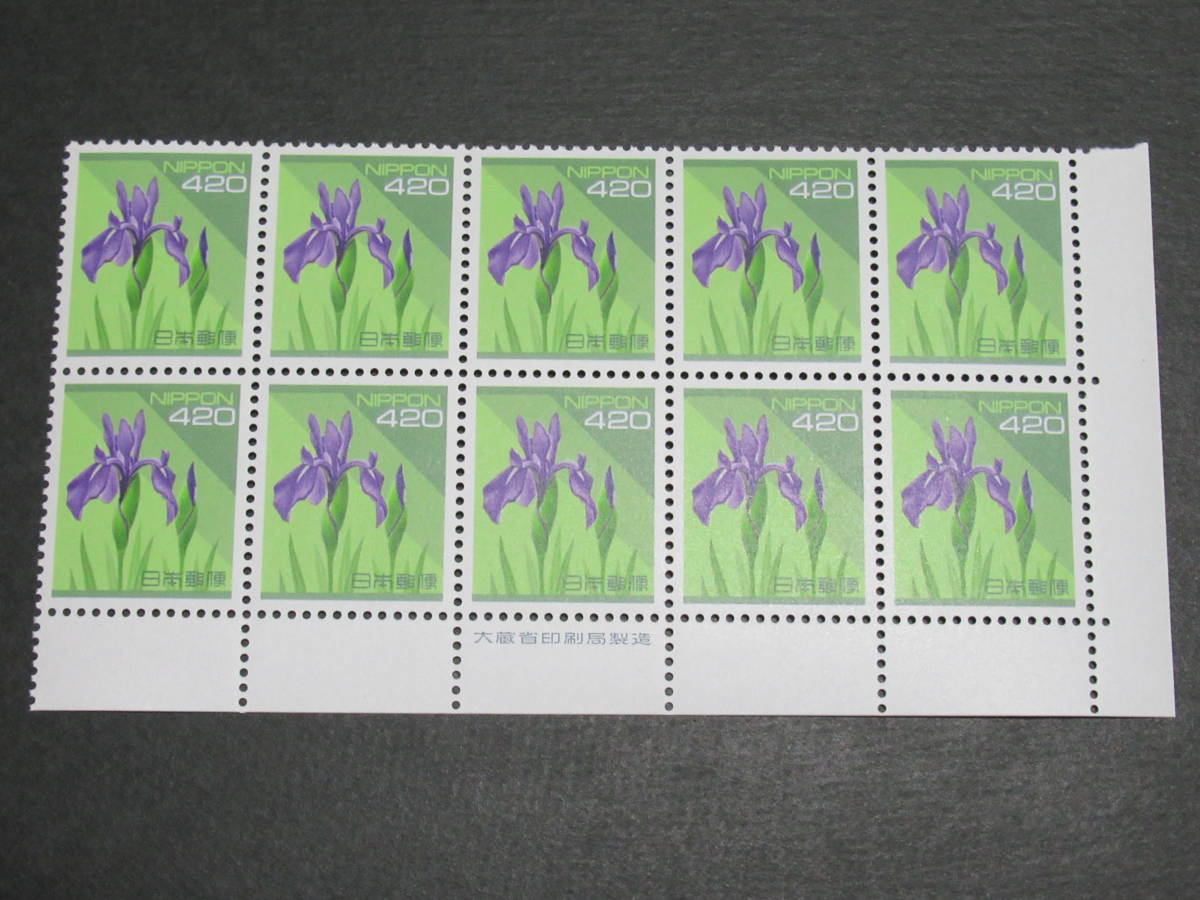《普通切手・銘版10枚・他》420円・ノハナショウブ・大蔵銘版・10枚ブロック 《カタログ価 15000円》