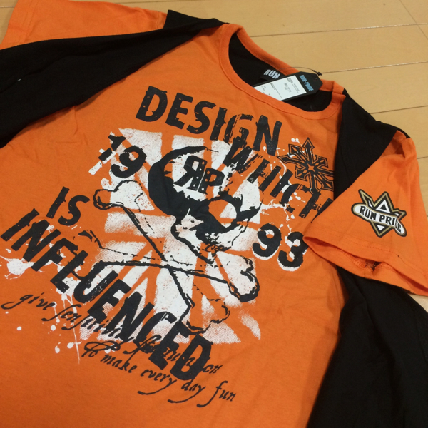 ◆ジレベストを重ね着した様なレイヤードデザインがオシャレ♪前ボタンを外して着用すると激渋ドクロ柄♪袖プリント有