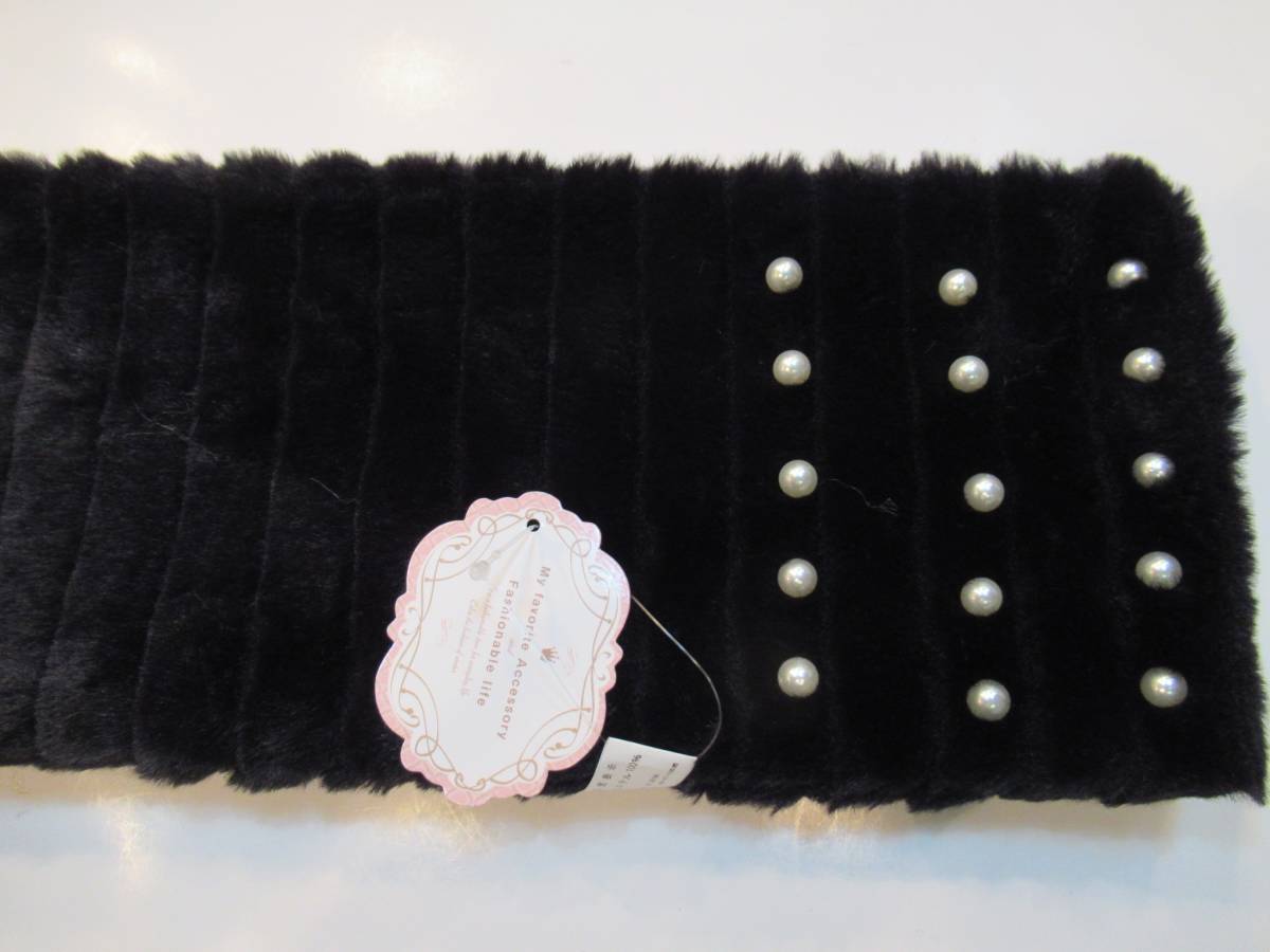 レディースマフラー ふわふわパール付きファーマフラー サービス品 ブラック★