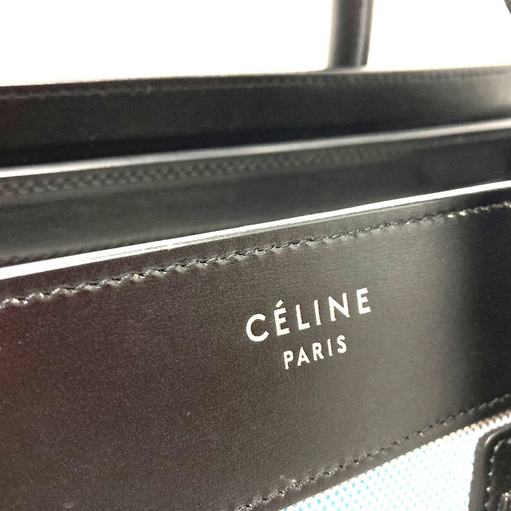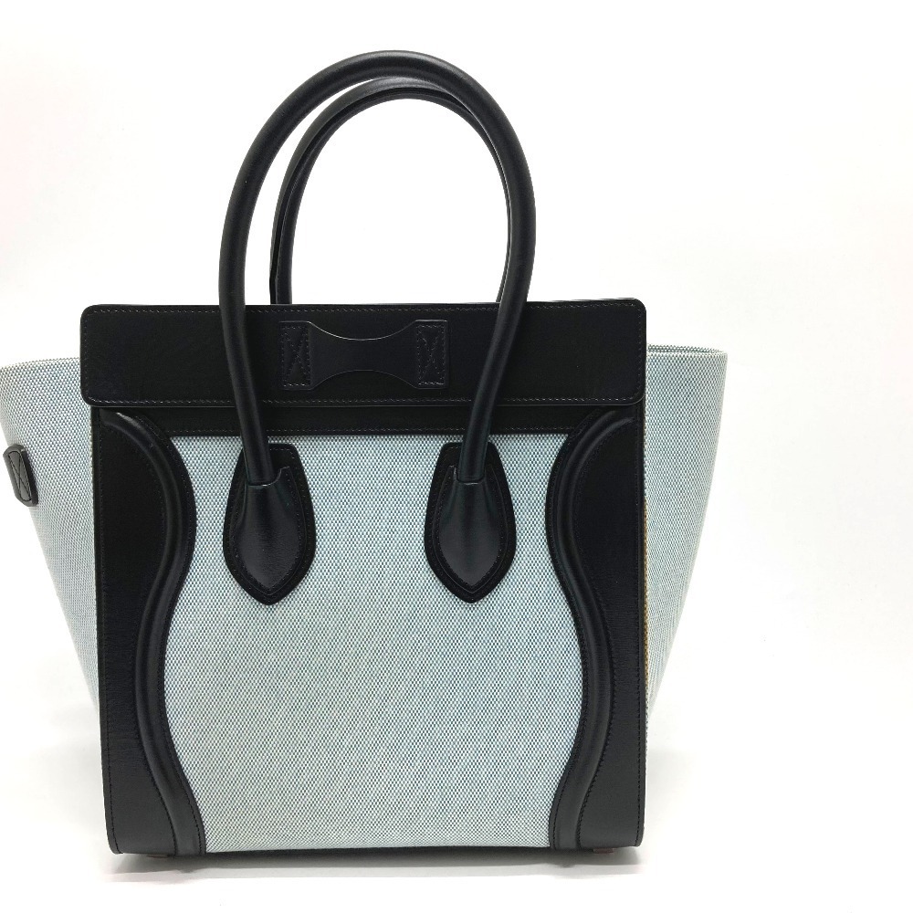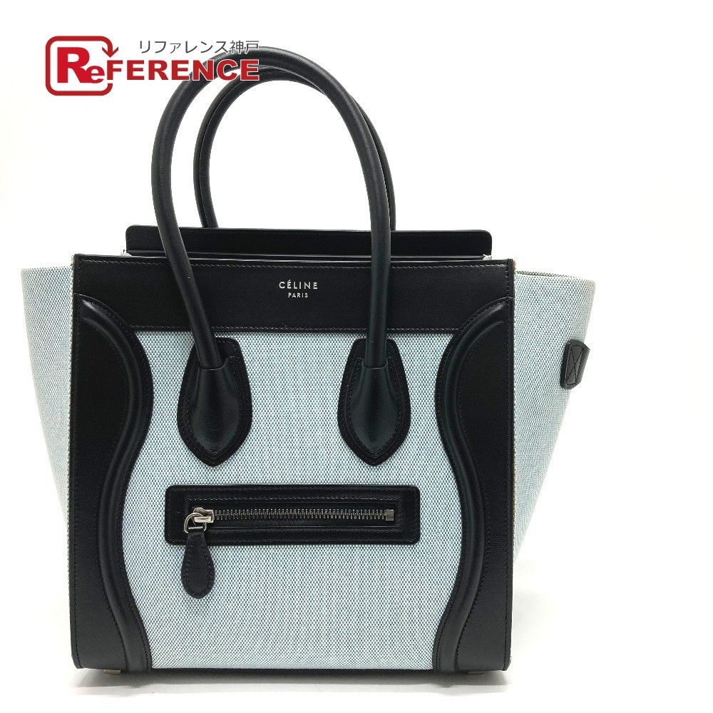 CELINE セリーヌ 167792 ラゲージ マイクロショッパー ハンドバッグ レザー/キャンバス レディース アクア