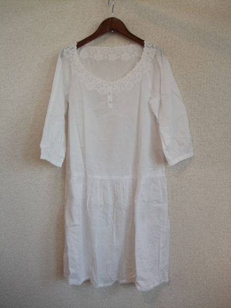 商品名 | 無印良品白レース付7分袖膝下丈ワンピ(USED)41114② |