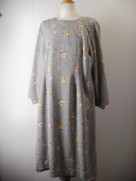 ワンピース 昭和レトロ シルバー 花柄 古着 c349