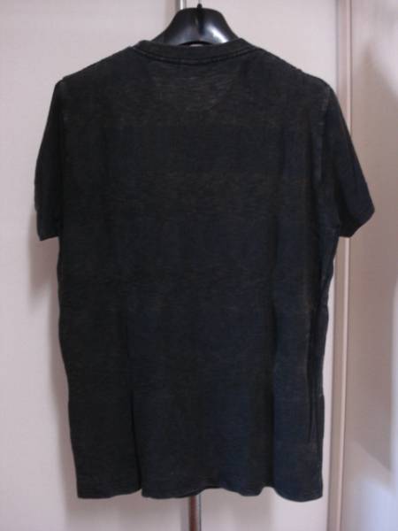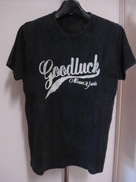濃色系ゆえ画像にて確認しにくいかと思いますが、2種類のチャコールグレー系斑染め地がボーダー風になっている感じで、1種類には若干のドレープが入った感じのお洒落な作りの素材で(個人的主観です)、GOOD LUCK NEW YORKプリント入りです。