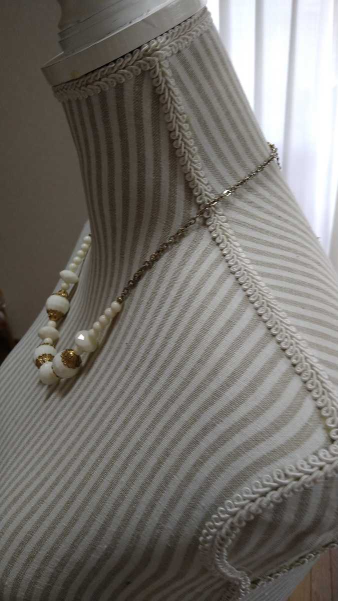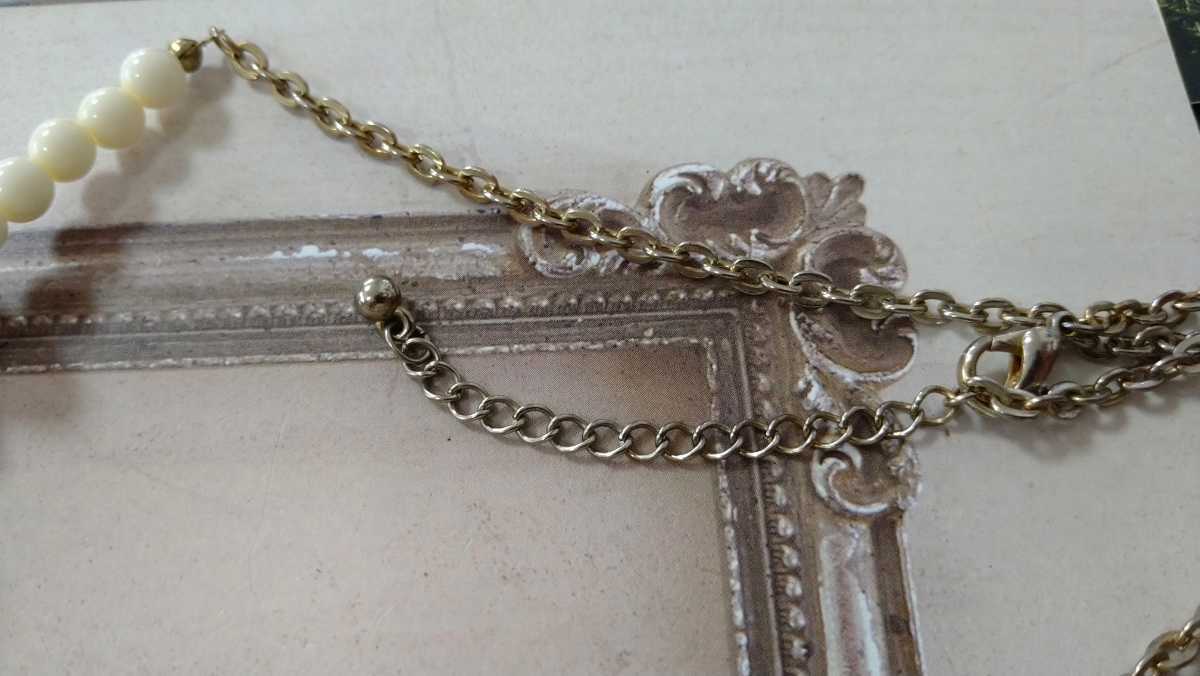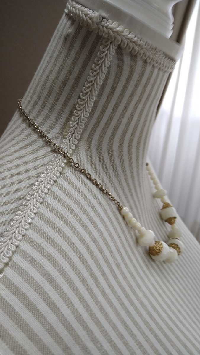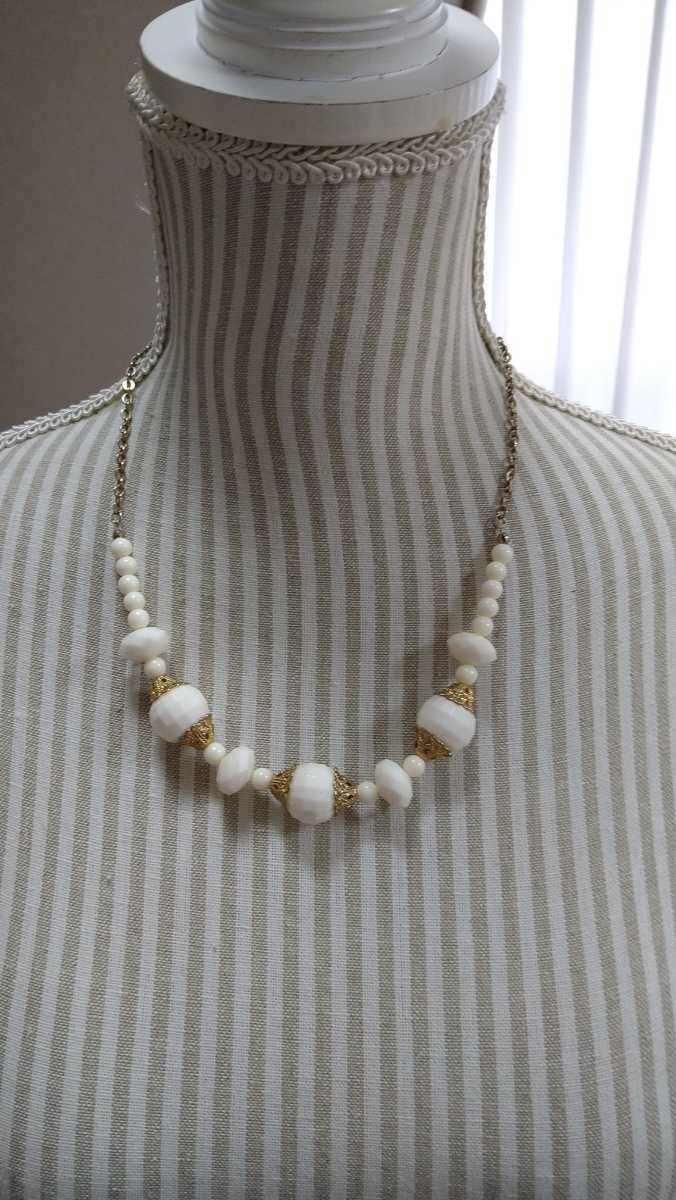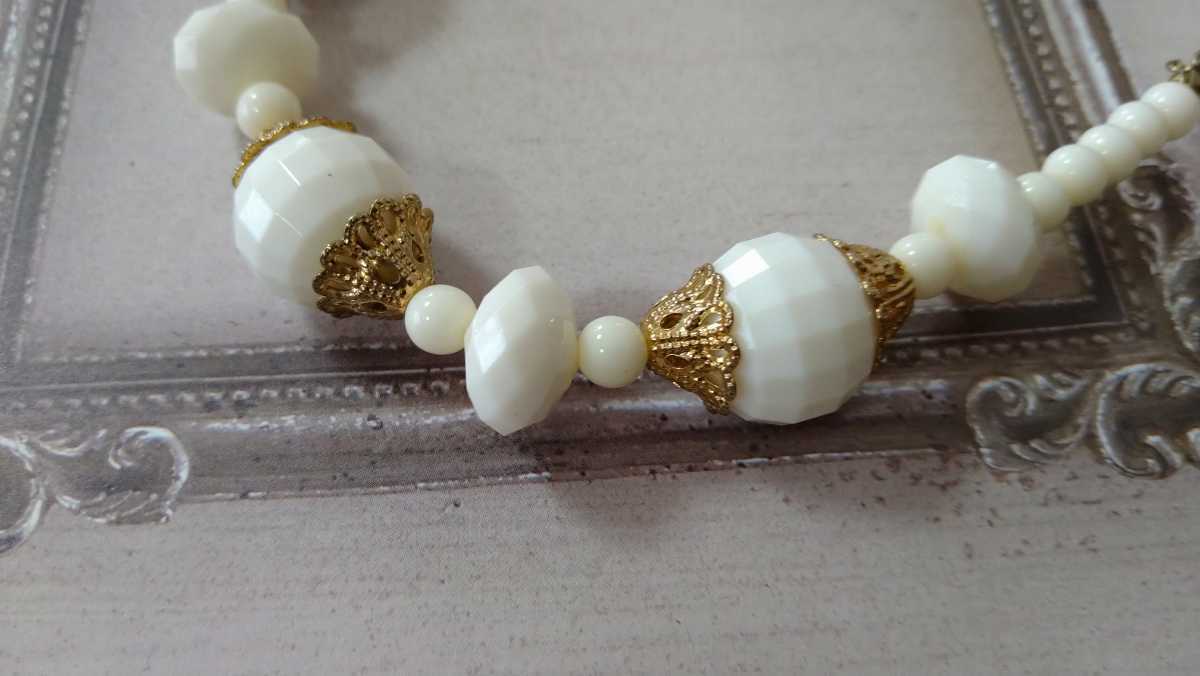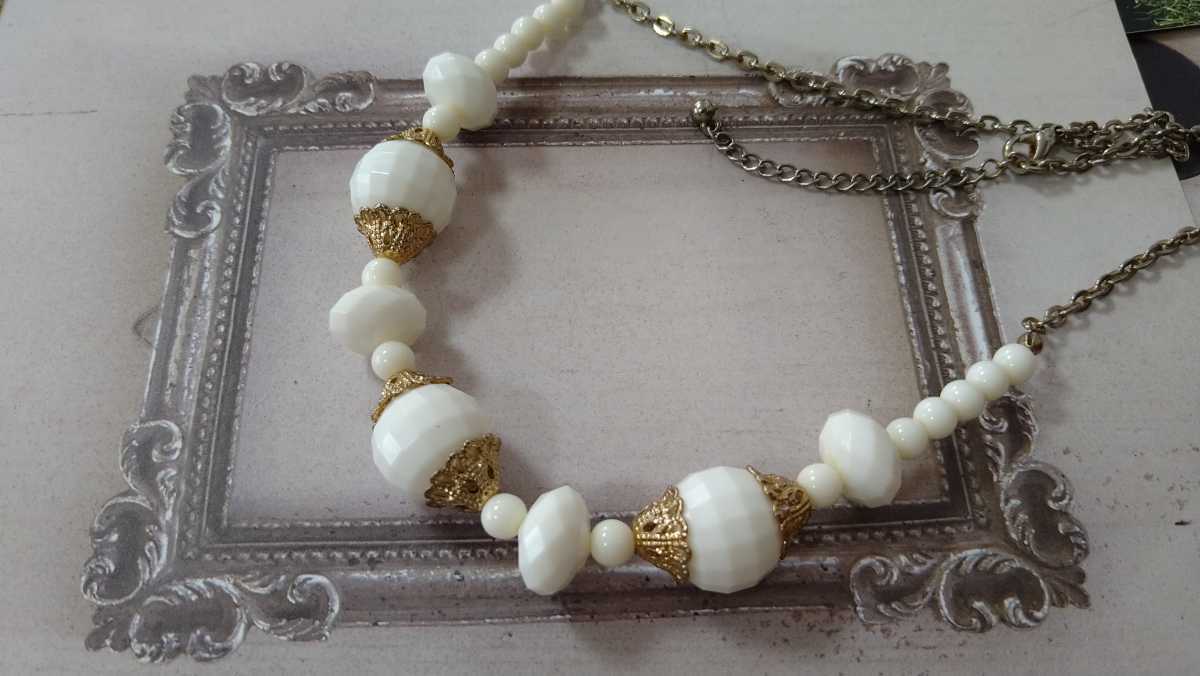 多面カット白ビーズ×ゴールドカラーのネックレスです