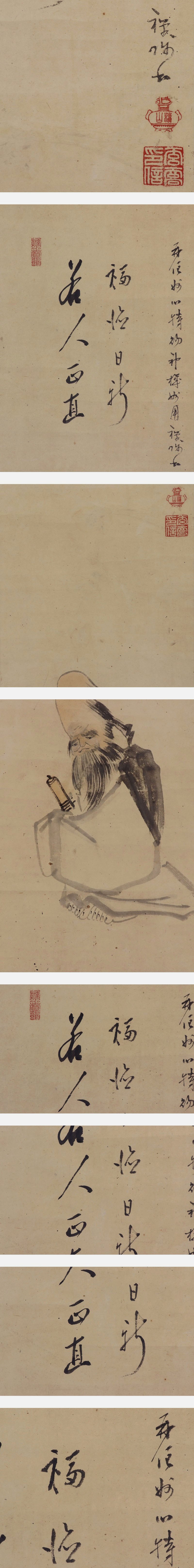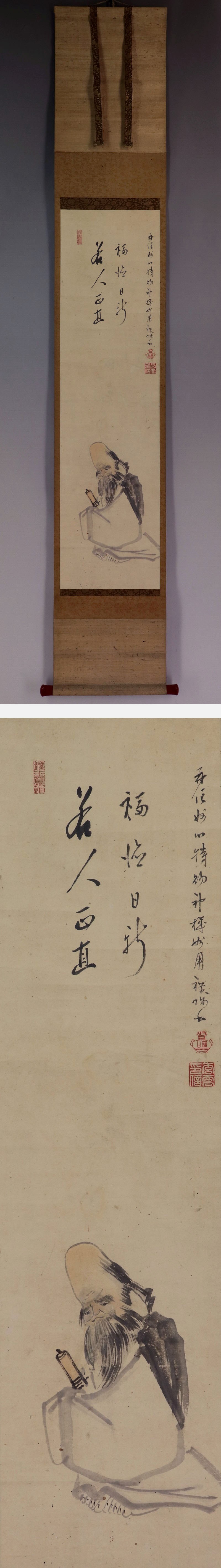 | №2112040【真作】蘇山玄喬【寿老人】◆紙本◆合箱◆掛軸 | |