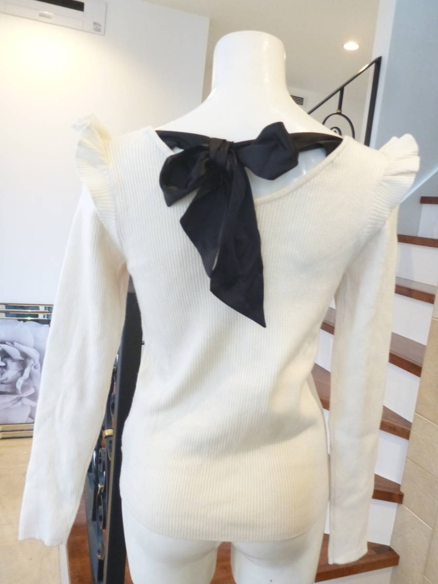 美品 INGNI(イング) ★白×黒リボン バイカラー 長袖 セーター M