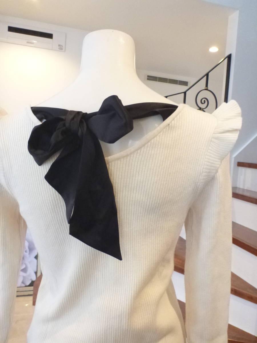 ◆白×黒リボン 長袖 セーター