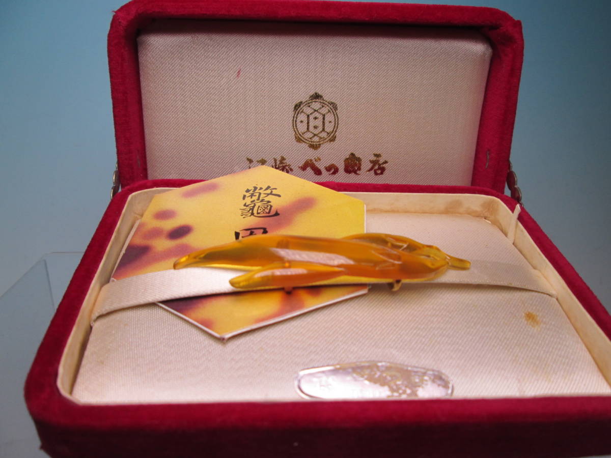 ☆江崎鼈甲店 本鼈甲 唐辛子デザイン 6,75cm の帯留め 共ケース付 未使用品