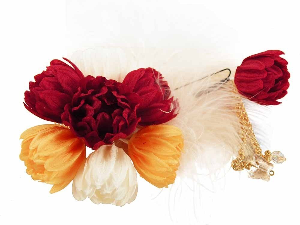 ■七五三 和装用■ お子様用 髪飾り 花 ファー付き 2個セット ck-447(赤系)【七五三 お正月 ひな祭りなどの おめかし用に♪】