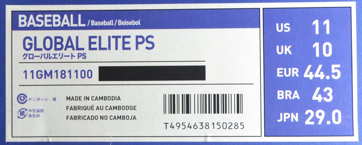 【新品/29cm/送料込】ミズノ■野球/金具埋込み式スパイク■グローバルエリート PS■11GM181100