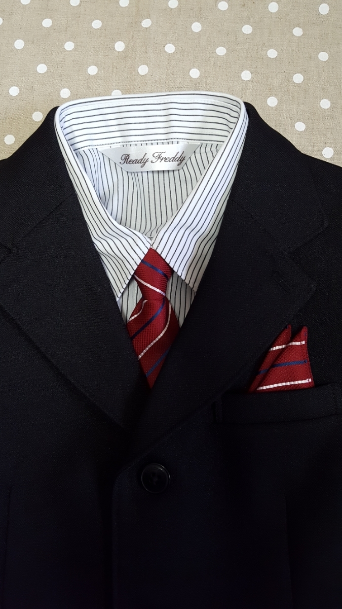 ネクタイはお揃いのポケットチーフ付き