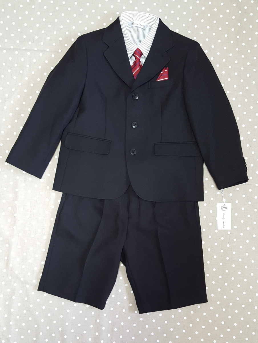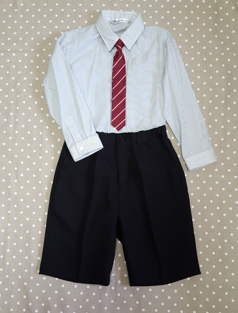 01-A421★送料込み新品!入学式♪ゆったりめフォーマルストライプシャツスーツ♪黒120B・ぽっちゃりさん・結婚式