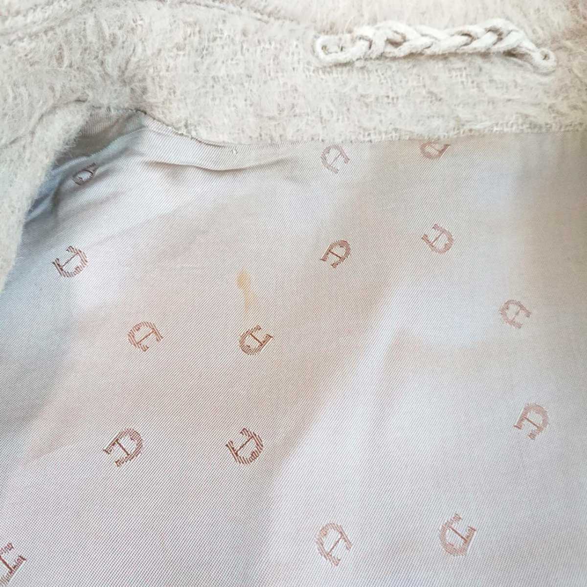 僅かな着用感はありますが、特筆すべきダメージのない美品になります。裏地に小さな薄シミがあります。