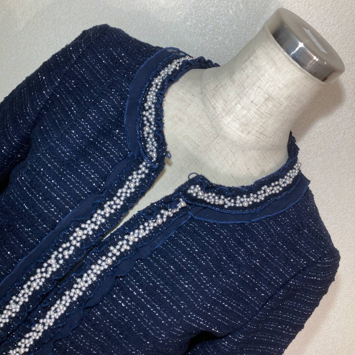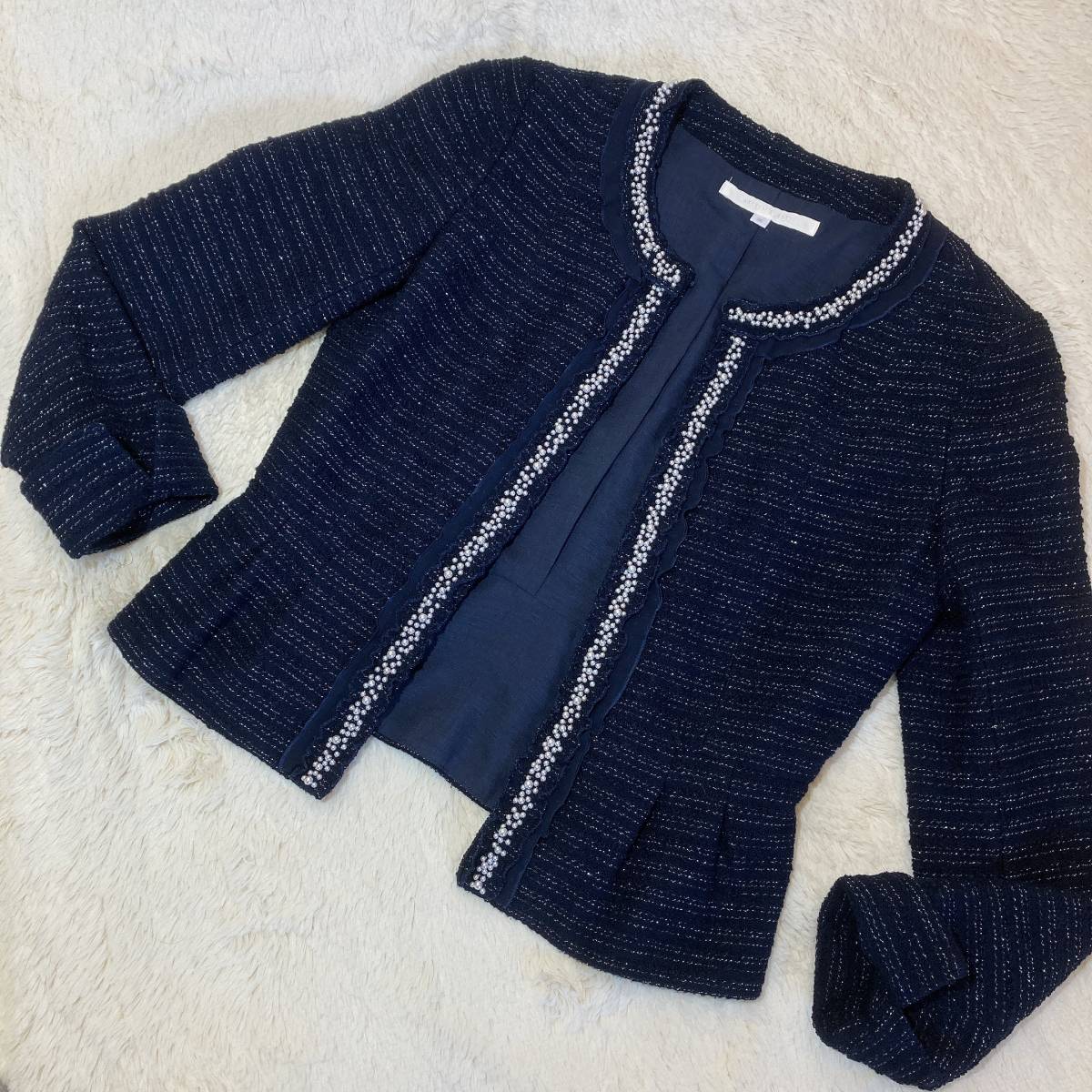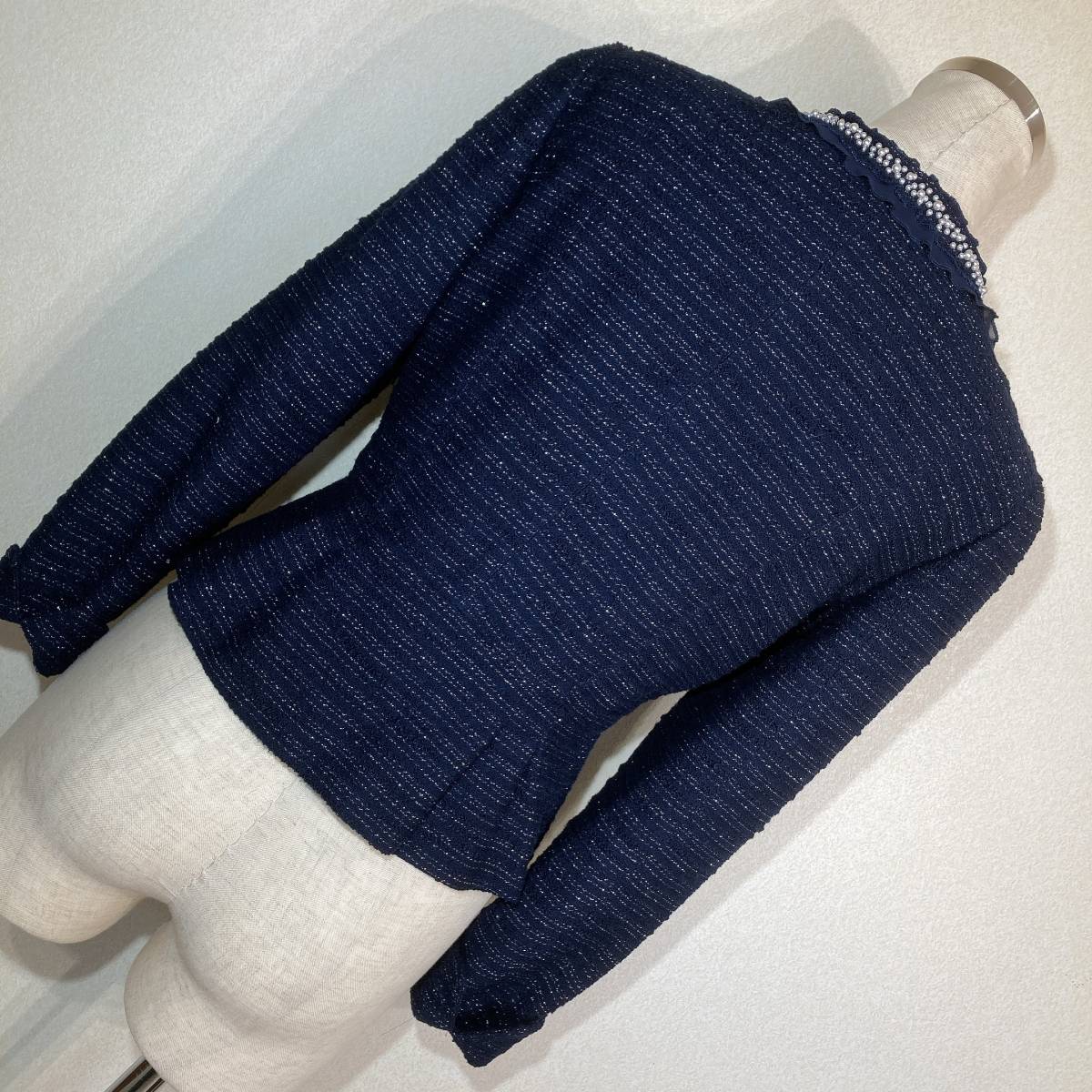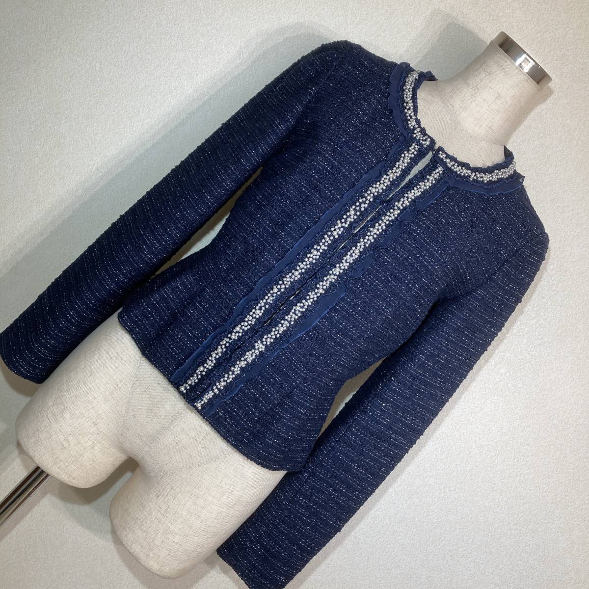 A227美品!■ナチュラルビューティ★ラメ入/濃紺ソフトツイード★ジャケット■36 | |||||||||||