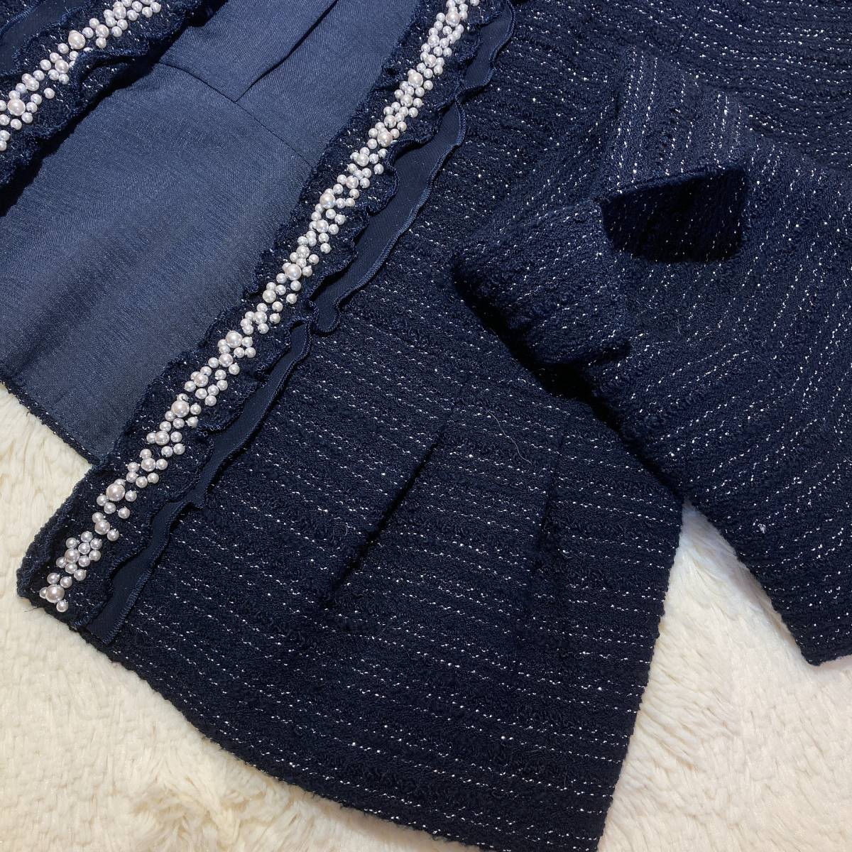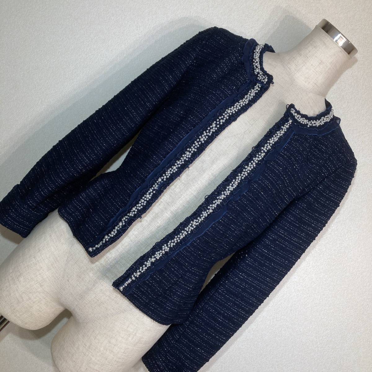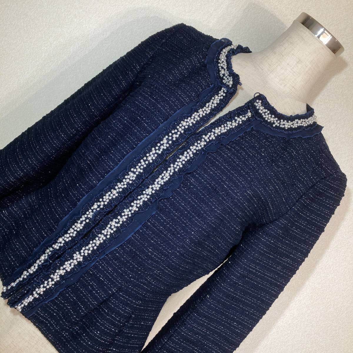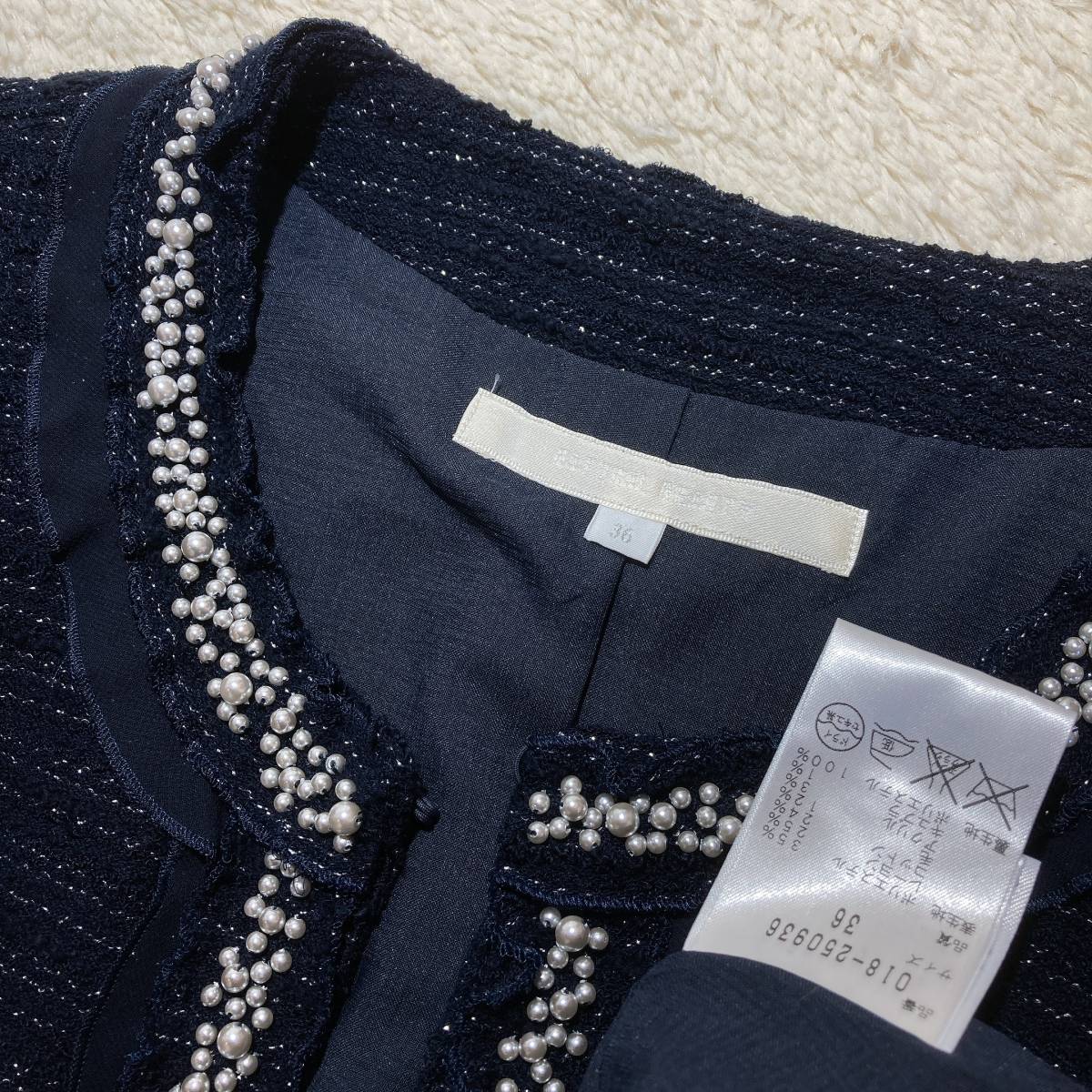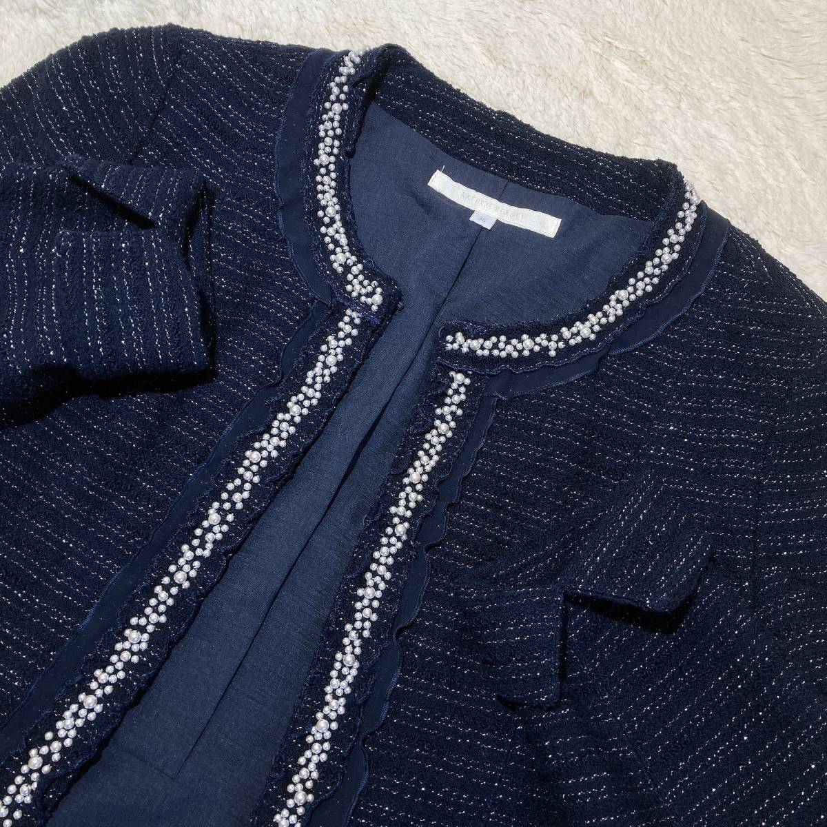 A227美品!■ナチュラルビューティ★ラメ入/濃紺ソフトツイード★ジャケット■36 | |||||||||||