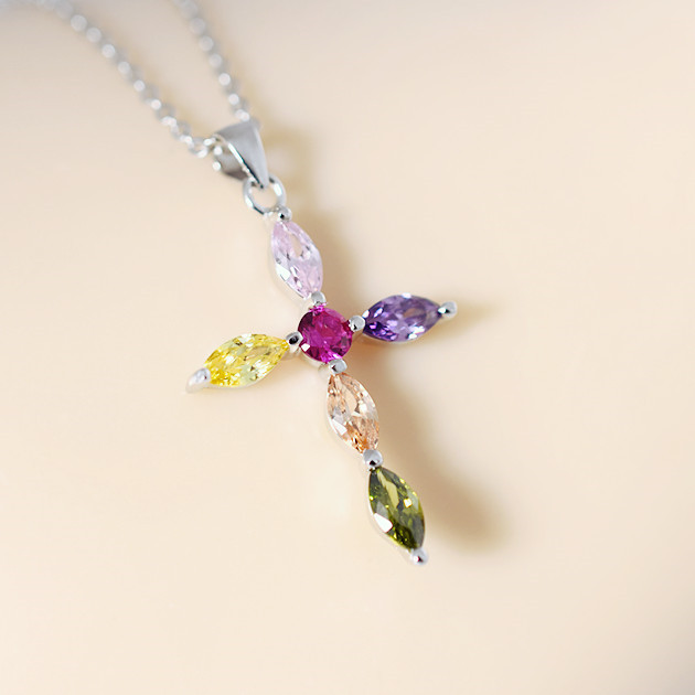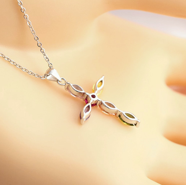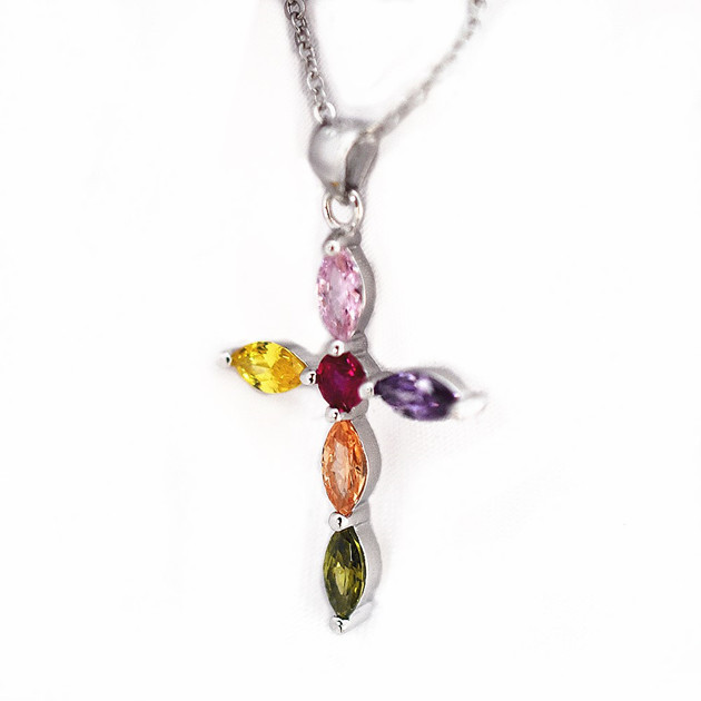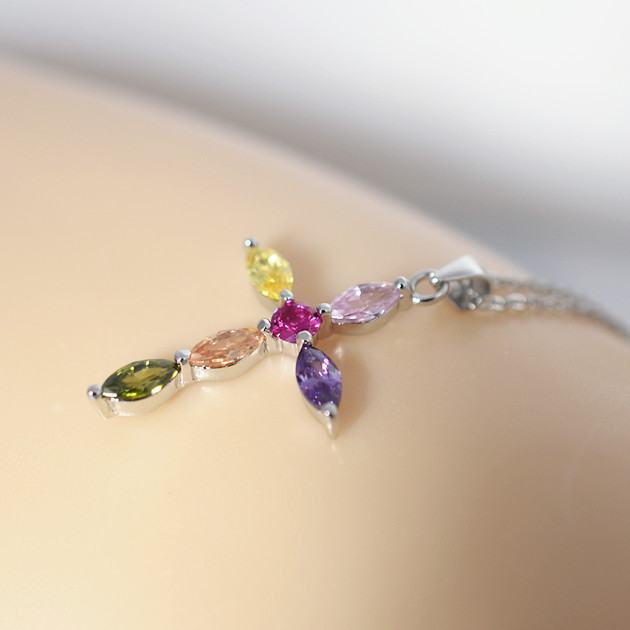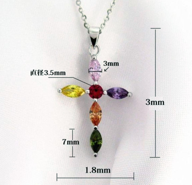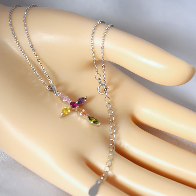 ●金属素材:シルバー925(刻印有り)、プラチナ仕上げ。●マルチカラーストーン素材:キュービックジルコニア。●チェーン:長さ約41cm 、アジャスター約6cm、全長約47cm、 太さ約0.8mm 、チェーンとトップ着脱可、アズキチェーン。