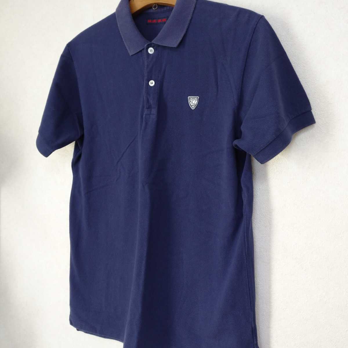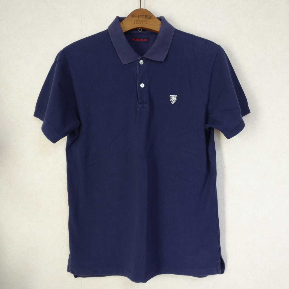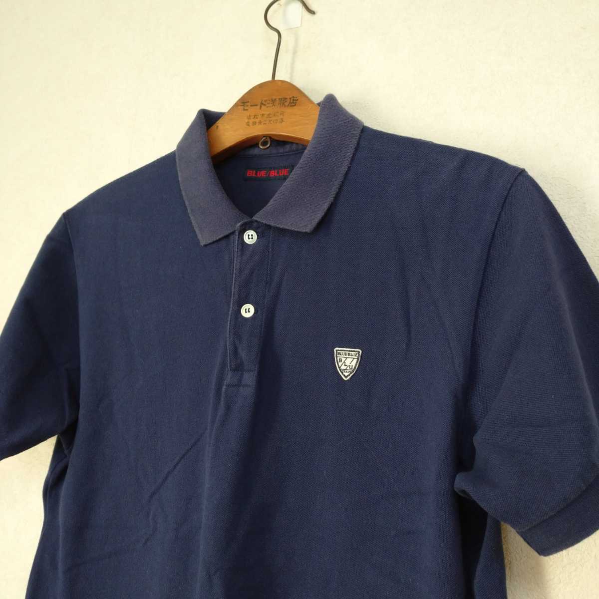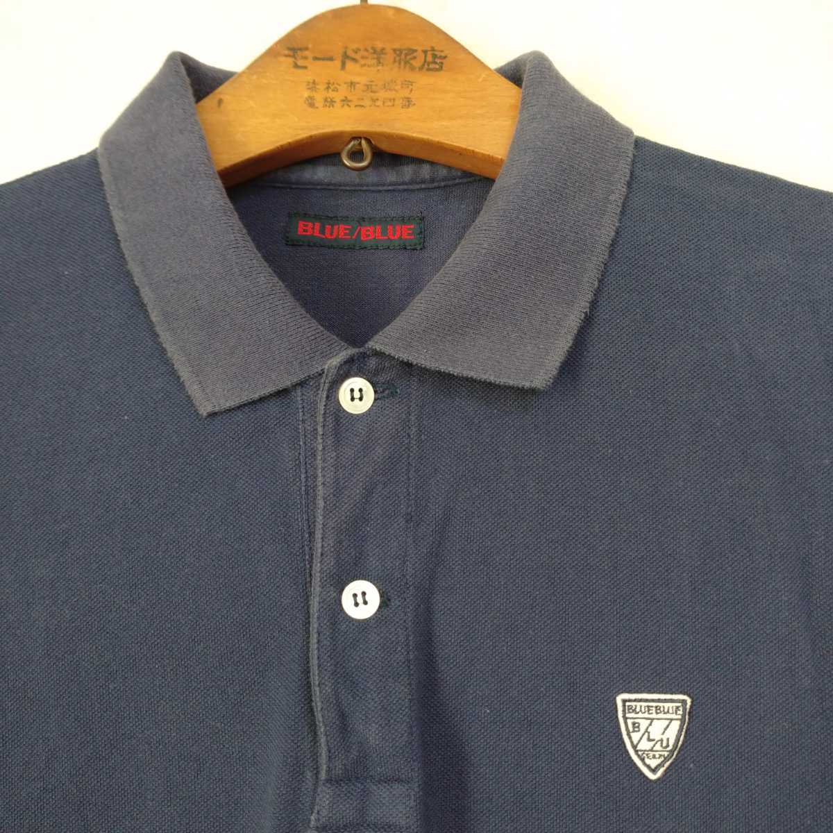多少の誤差はお許しください。良い雰囲気です。日本製、綿100ポロ、BLUEBLUE。できる限りダメージは説明させていただきますが、こちらが気づかない程度のわずかなしみ、よごれ、