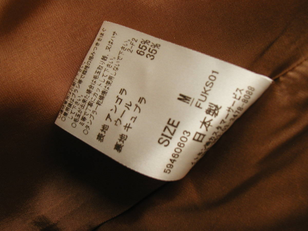 素材はアンゴラ65%ウール35%、裏地はキュプラ