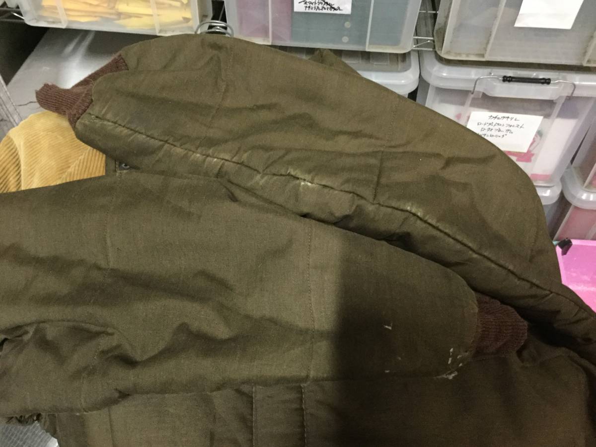| 使用感があり、リブ・袖に多少の汚れ、ダメージが見られ(画像3枚目)、切替部分に多少スレ汚れが見られます。 コーデュロイ切替部分に多少解れ・バック裾に生地の切れ、フロント裾や前たて付近に多少解れが見られます。 また、左右脇の下に幾分、解れが見られます。 その他には特に記載する様な汚れやダメージ等はございませんが、中古という事で注意を払っていても気がつかない小さなダメージ等がある恐れがございますので神経質な方・古着にご理解の無い方の入札はご遠慮願います。 |