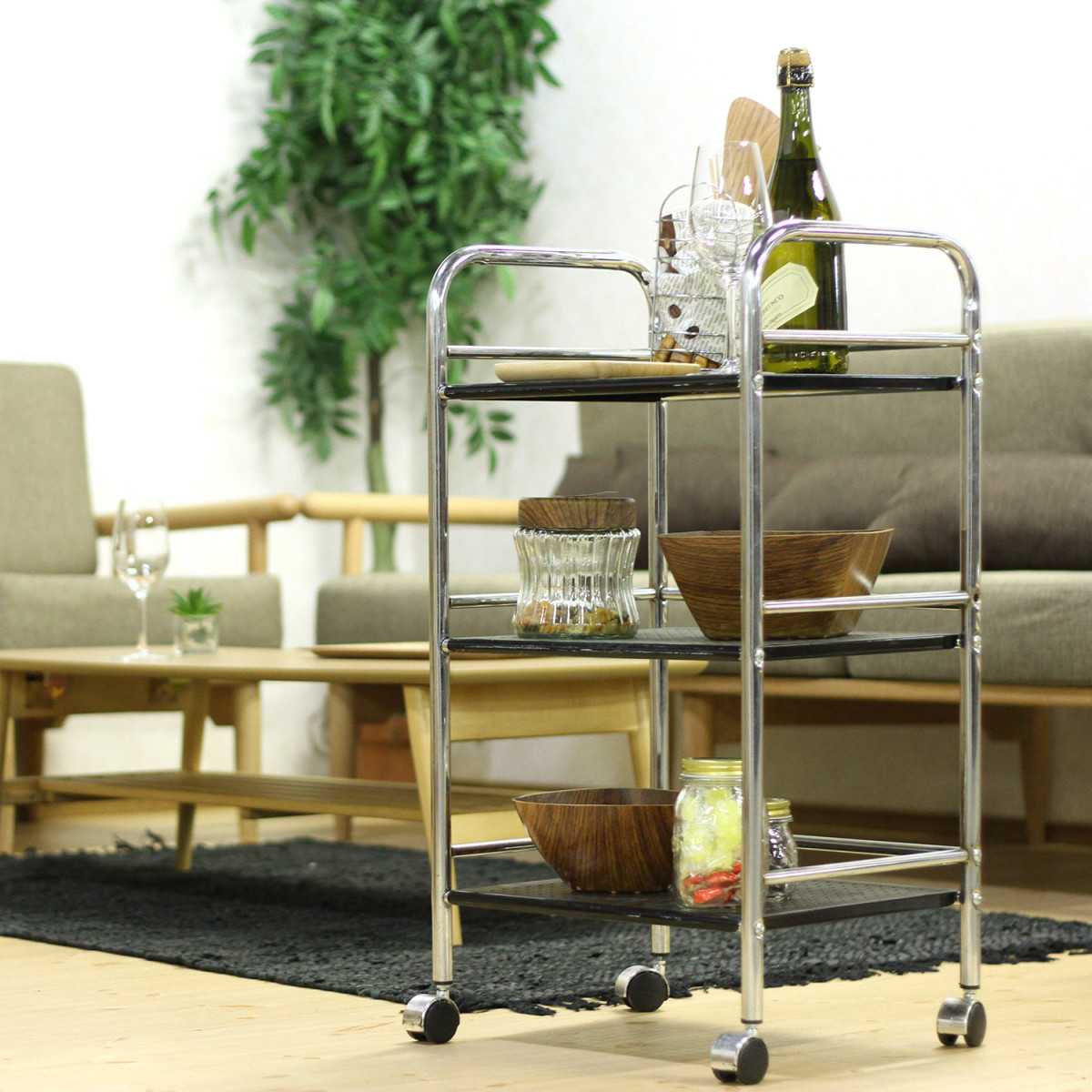 収納棚 収納ラック 小物置き オープンラック リビング キッチン ダイニング 玄関 収納 インテリア キッチンワゴン 家具 ワゴン 移動 給仕 キッチンワゴン キッチンカウンター サイドボード サイドチェスト ストッカー 食器 トローリー メッシュ マルチラック マルチワゴン 黒