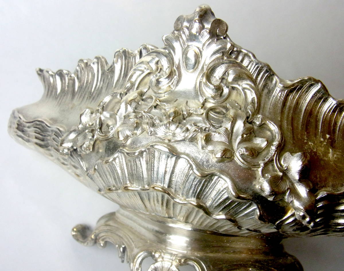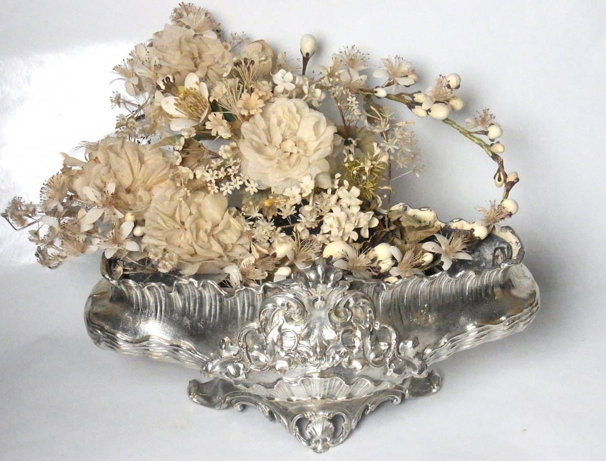 美 フランスアンティーク シルバー色のジャルディニエール 花器 ロカイユ意匠 センターピース ポット 西洋骨董