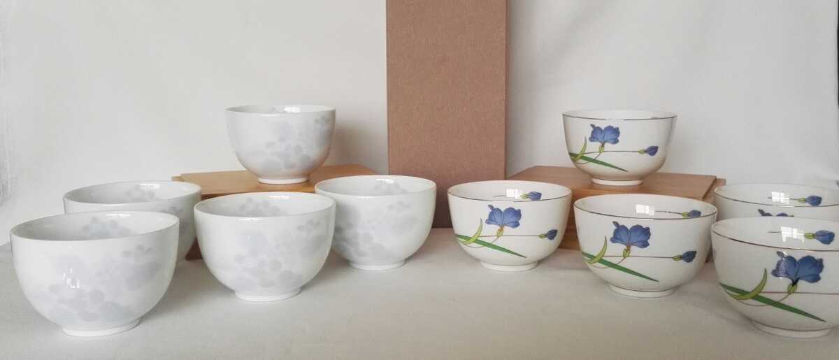 [未使用] 茶器 湯呑み 青露草煎茶揃 特選陶器 全10点 露草 里城作5客 あじさい 耕山作5客 ★02V-44の出品になります。