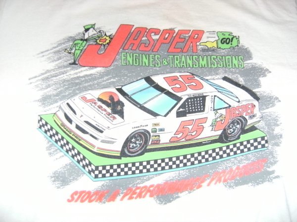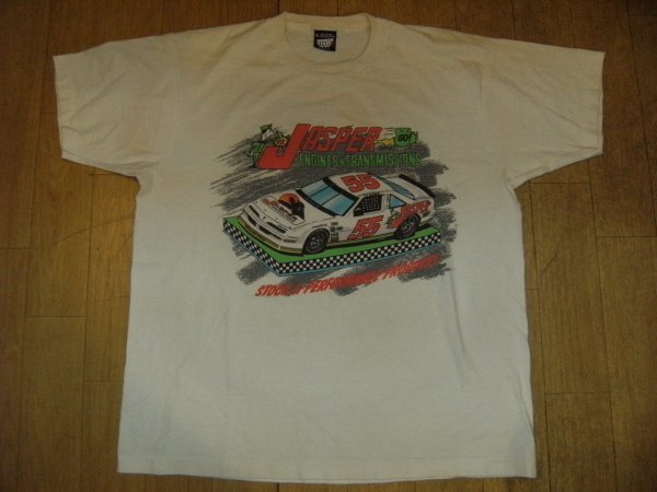 昭和レトロ★アメリカ製★90年代★JASPER Engines & Transmissions Tシャツ★旧車 自動車ショップ カーピット F1 グランプリ カーレース