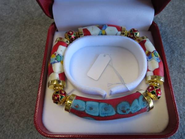 両サイドにシルバー925のカバーをし、5ミクロンの金メッキをしてあります。間に七宝の玉4個(タイ製)