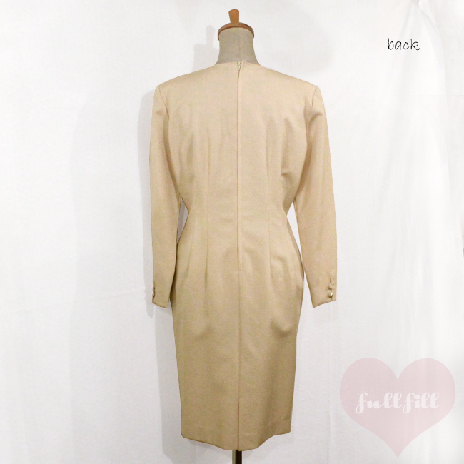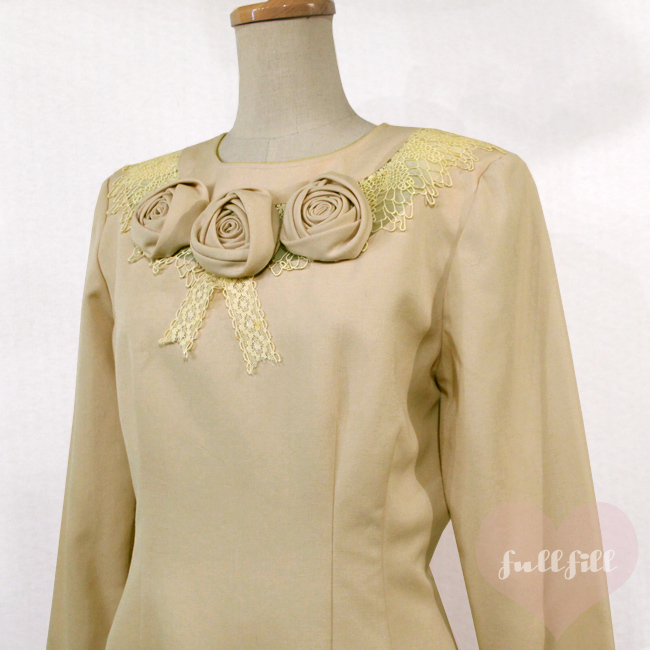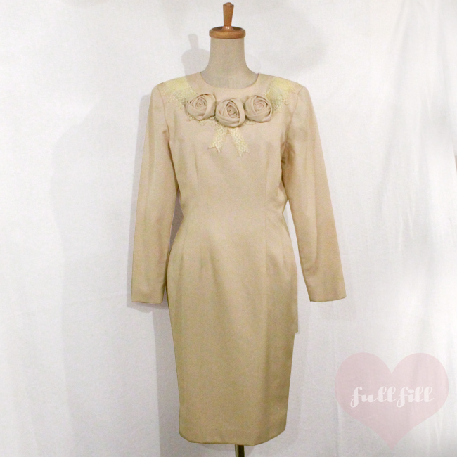 ワンピース 古着 フォーマル ピンクベージュ レトロ 昭和 薔薇 バラ 長袖ワンピース 入学式 卒業式 ビンテージ ヴィンテージ vintage