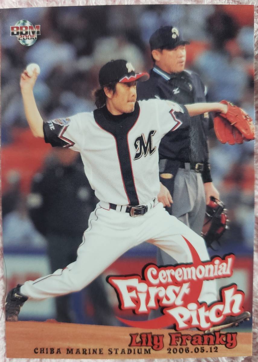 2006年にベースボールマガジン社(BBM社)より発売されたベースボールカード2ndバージョンに封入されておりました作家のリリー・フランキーさんの始球式カードになります。