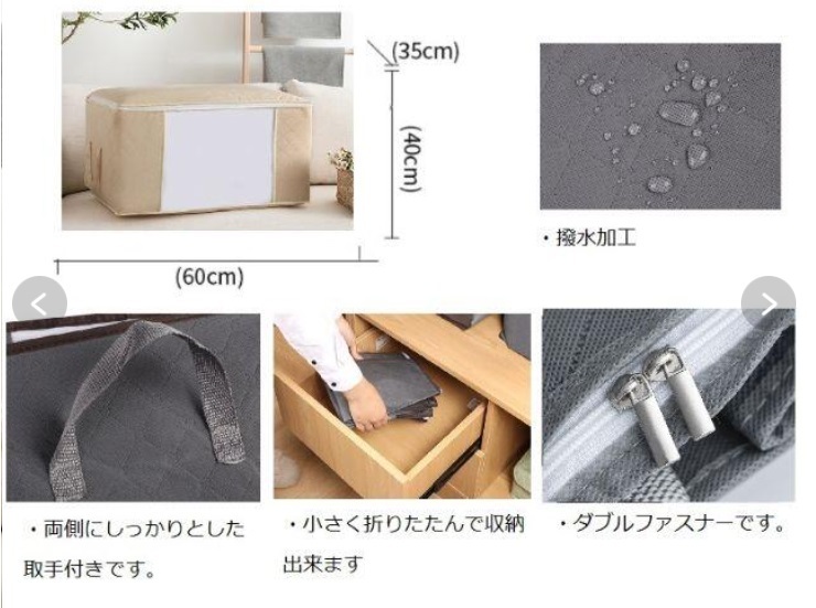 不織布収納ケース(ベージュ):60*40*35cm 衣類収納 布団収納 ご覧いただきましてありがとうございます。 ・オフシーズンの衣類、毛布、敷パッドなどの寝具の長期保管にピッタリです。そして、この収納袋はコンパクトに折りたためるから、ケースのように押入れの場所をムダに占領してしまうことはありません。 ・収納ケースが長持ちする不織布で作製し、しっかりした作りで安心感があります。薄くて軽いても、耐久性があり、防虫、防塵、湿気を隔離するには役に立ちます。布団、衣類などを押し入れ、長時間防湿できます。不織布の通気性もいいので収納後に積み重ねて狭い場所にも押し込めます。 ・ビニールの透明窓が付いているので、中身が一目でわかるので、開けなくても何が入っているのかわかりやすい、探す手間も省けます。収納ケースを開くこともとっても簡単です!左右両開きファスナー開けるとすぐ開けられるのが便利です。金属製のジッパーは壊れにくい&チャックが大きく開くので出し入れもしやすいです。 ・両側にしっかりとした持ち手があります、柔らかい手触りで手の痛みがなくなり、クローゼットから引っ張り出す時には使いやすい、移動や引越などの荷物運びにもとっても便利です。 ・毛布・布団・衣類の圧縮を実現できて便利な収納袋です 。室内で普段使わない物をスッキリ整理整頓、狭いスペースでスッキリ、 家庭の旅行・出張・引越しにも最適です。バッグ以外の用途としては丸めたタオルを縦に詰めたり、ソックスなど軽い物を収納するのにも利用できます。 出品者が仕事のため、連絡が夜になる場合が多いと思います。宜しくお願い致します。