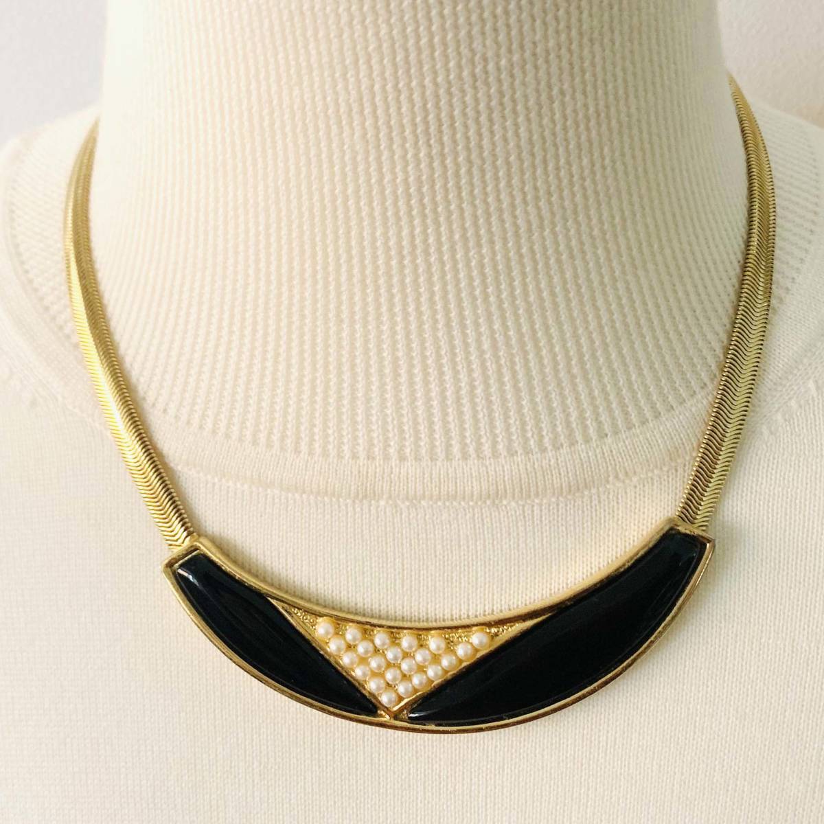 美品 フェイクパール オキニス風 ゴールド ゴージャス ネックレス No.5148