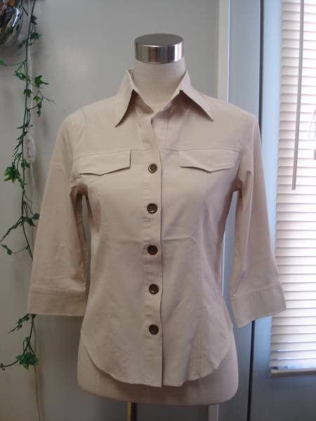 ★ELLE PLANETE エルプラネット★七分袖シャツ 無地 ベージュ38/w201