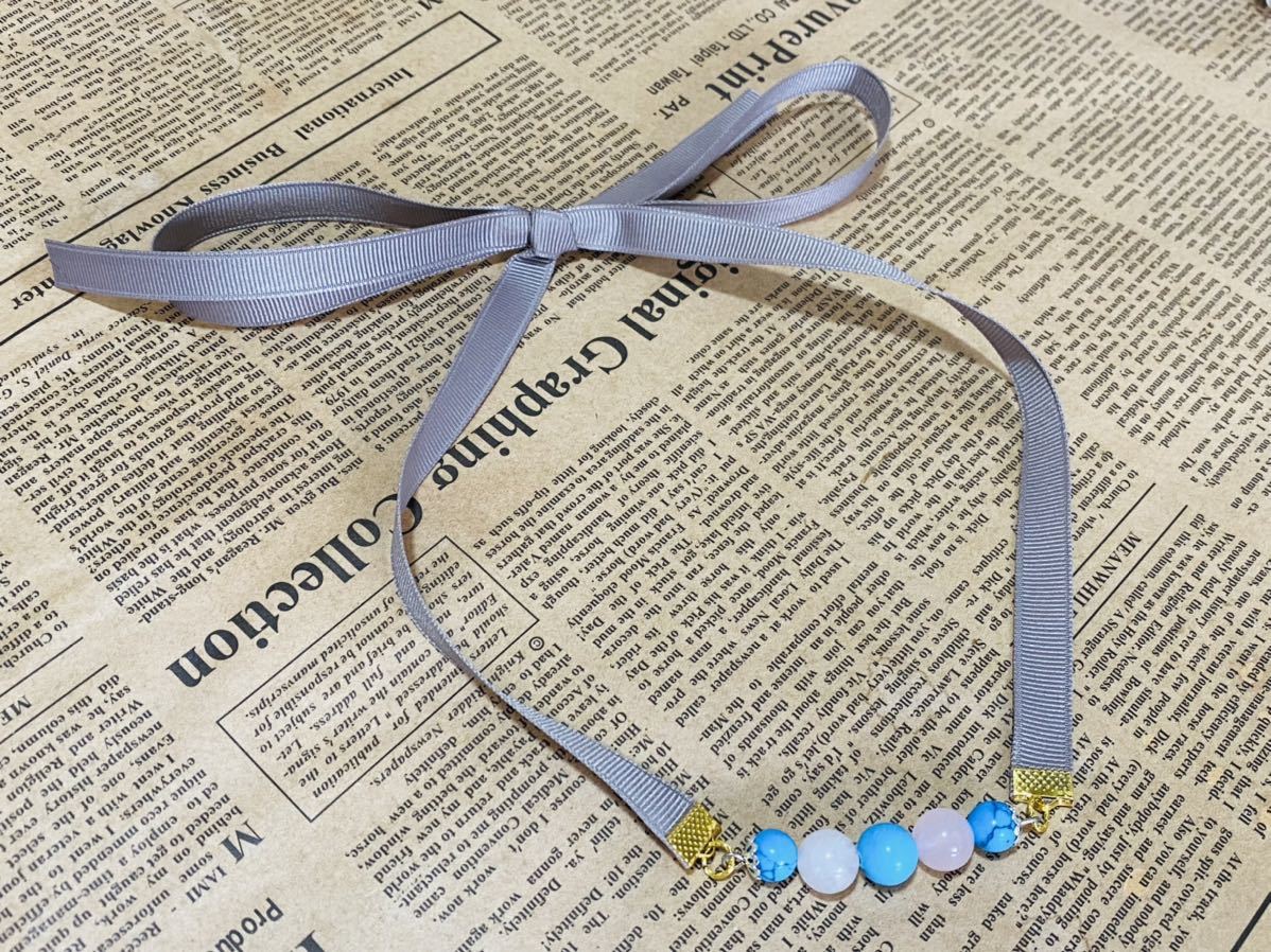 ◇世界に一本の天然石を用いたグログランリボンネックレスです。