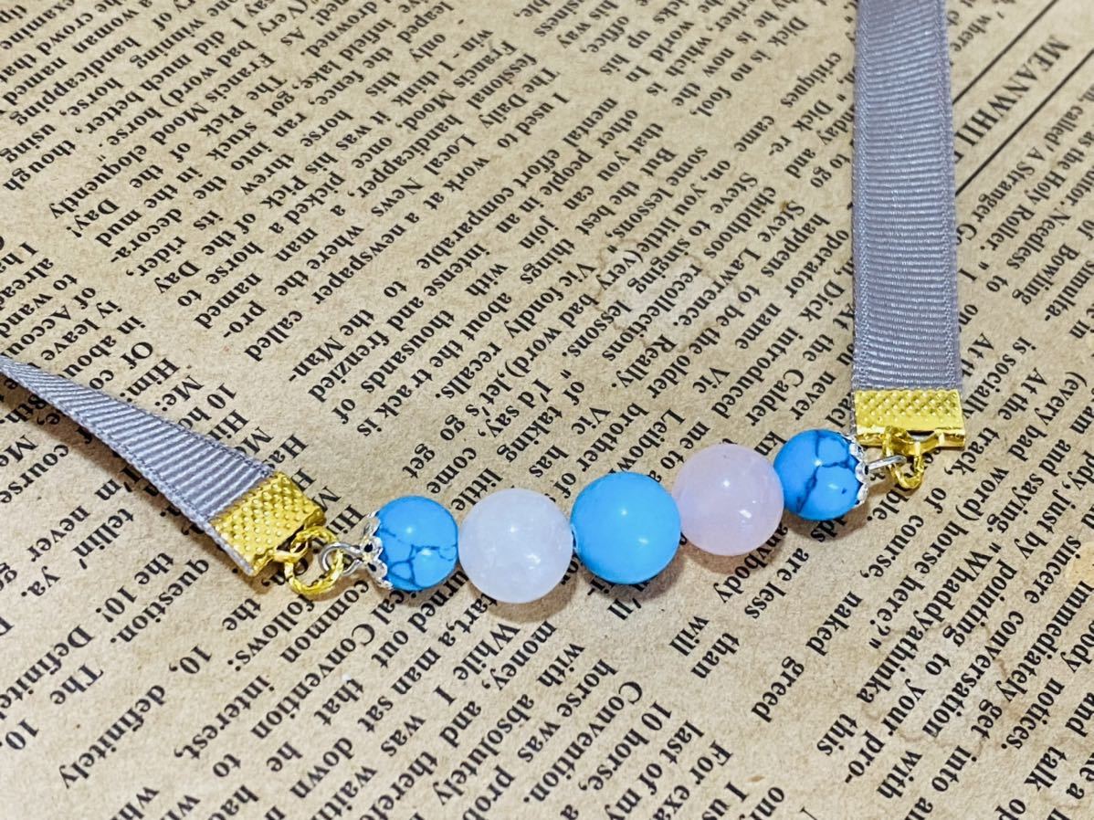 ◇美麗◇天然石 グログランリボンネックレス◇ターコイズ×ローズクォーツ◇レディース◇パワーストーン◇