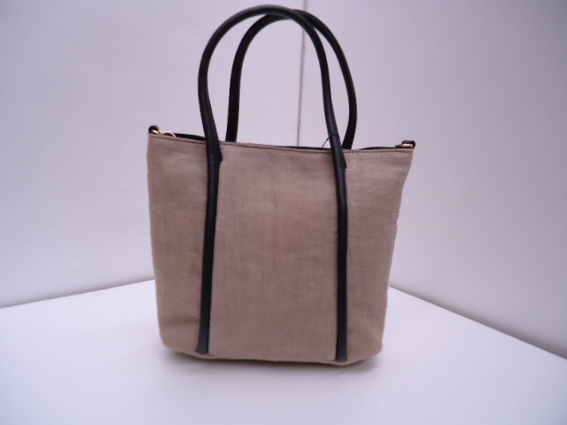 【KCM】bgg-22★新品★レディース 2way ミニトートバッグ ショルダーバッグ 麻 ベージュ系 約W21×H20×D8cm