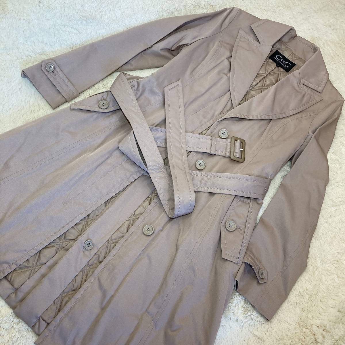 J041美品!■C de C★薄ベージュ/キルティング裏地★ロングコート■36 | |||||||||||