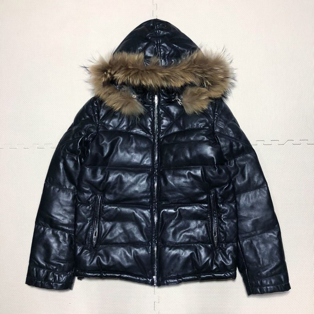 羊革 ラム オールレザー フードファー ダウンジャケット