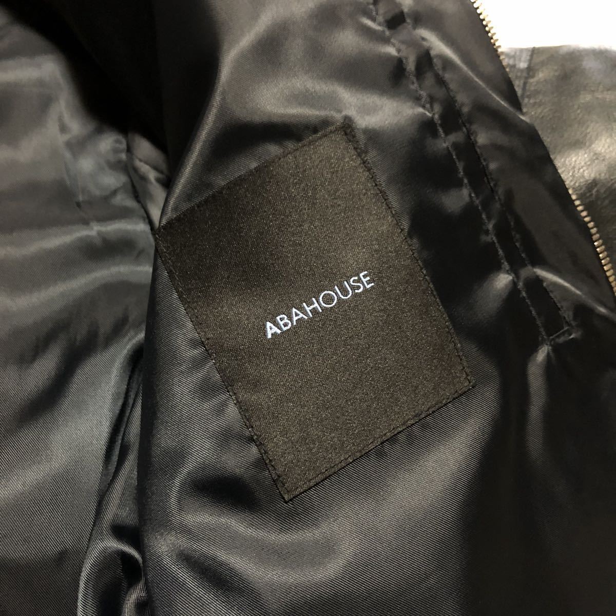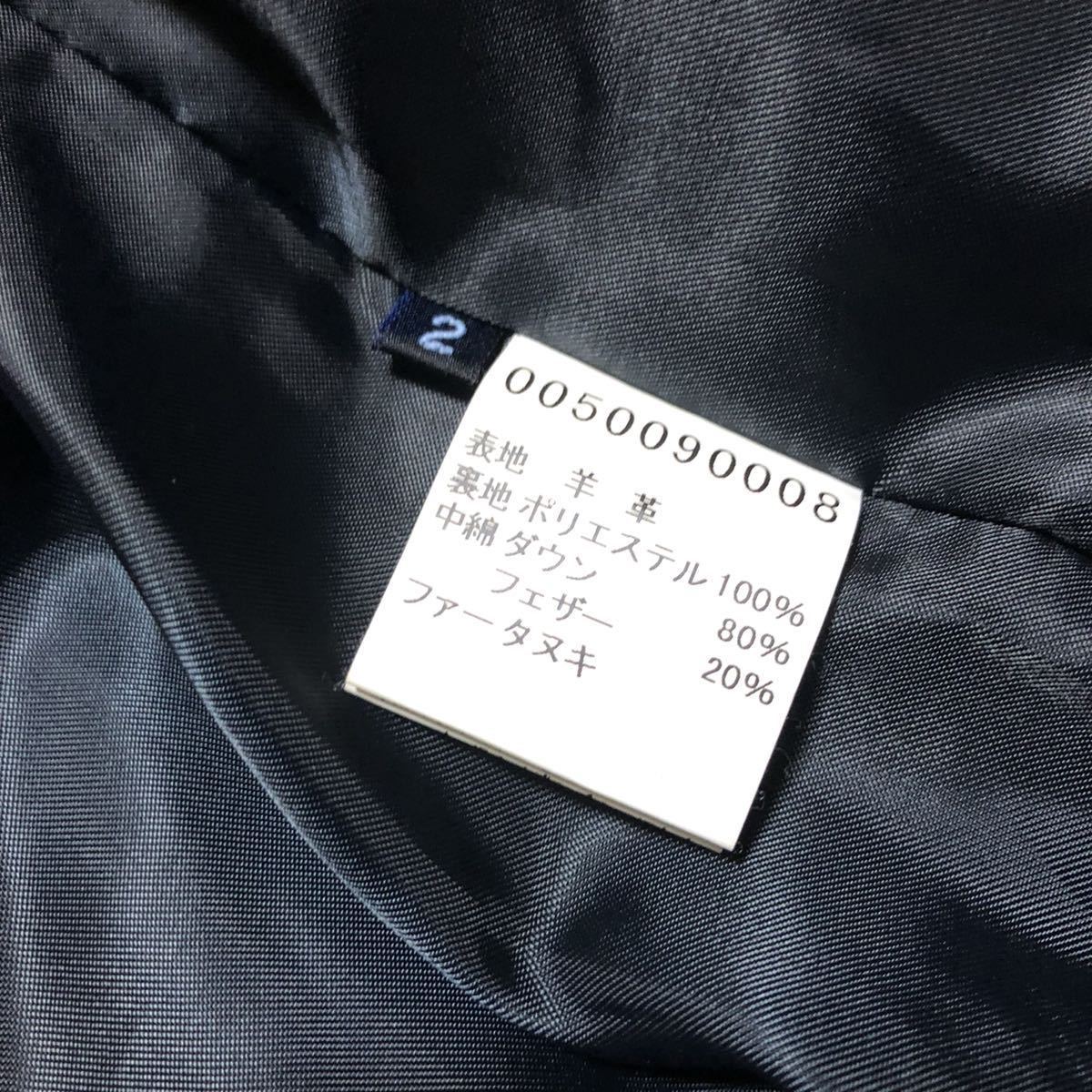 ★ ABA HOUSE アバハウス 羊革 ラム オールレザー フードファー ダウンジャケット 2 美品 ブラックネイビー