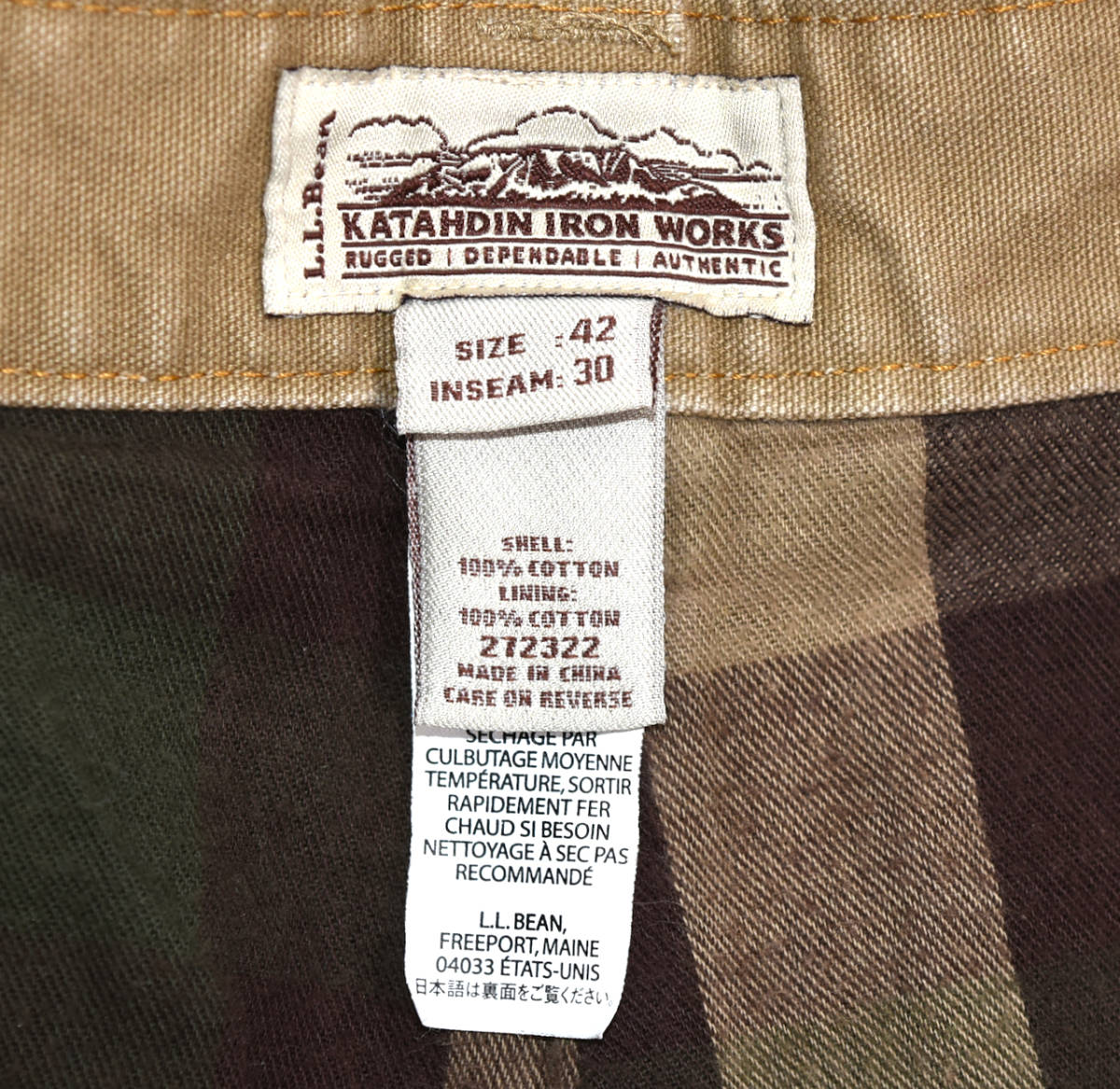 00s~ L.L.Bean KATAHDIN IRON WORKS Cargo pants 42 Light brown オールドエルエルビーン カタディンアイアンワークス カーゴ 裏地付き