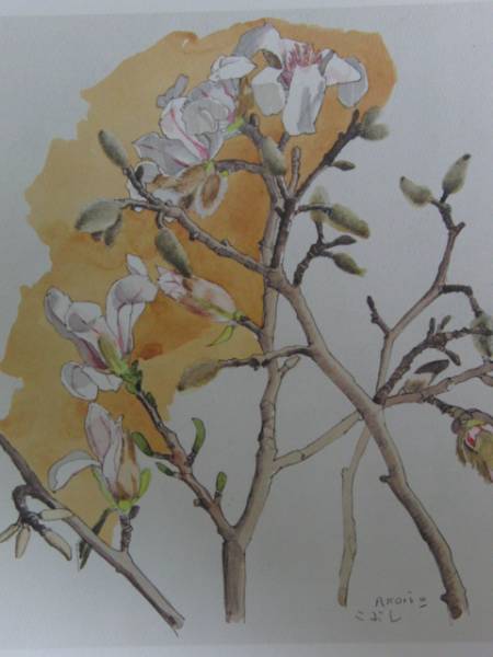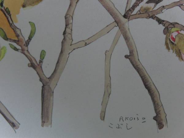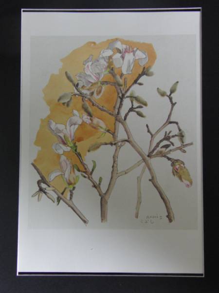 小磯良平、こぶし、高級薬用植物画、版上サイン入り、新品額付 ami5