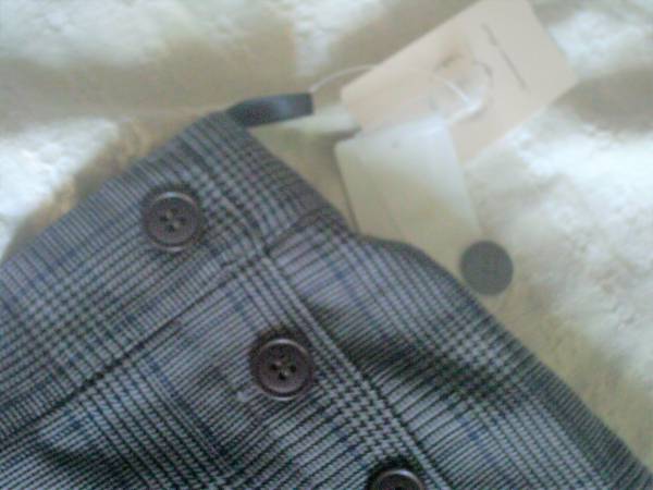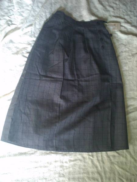 新品タグ付きです。 定価 商品代金6,900円+税 カラー グレーxブルーのグレンチェック 素材 表地 ポリエステル65% レーヨン35% 裏地 ポリエステル サイズ M 実寸 ウェスト64―86 ヒップ122 着丈74.5cm ウェストは背中側がゴムです。 | ||