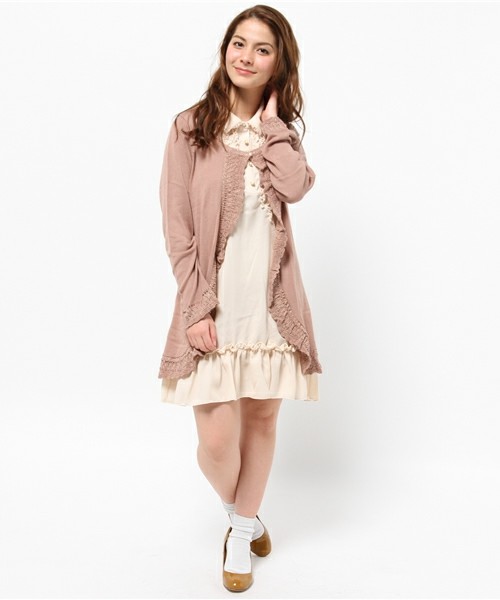 433◇カーデ重ね風チュニック 淡ピンク axes femme アクシーズ ファム SK362X29 ワンピース チュニック
