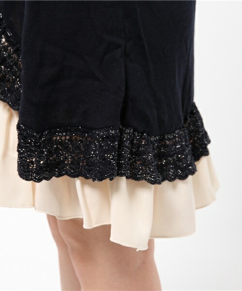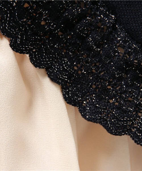 ニットの透かし編みやラメ糸の組み合わせが上品な印象です。
