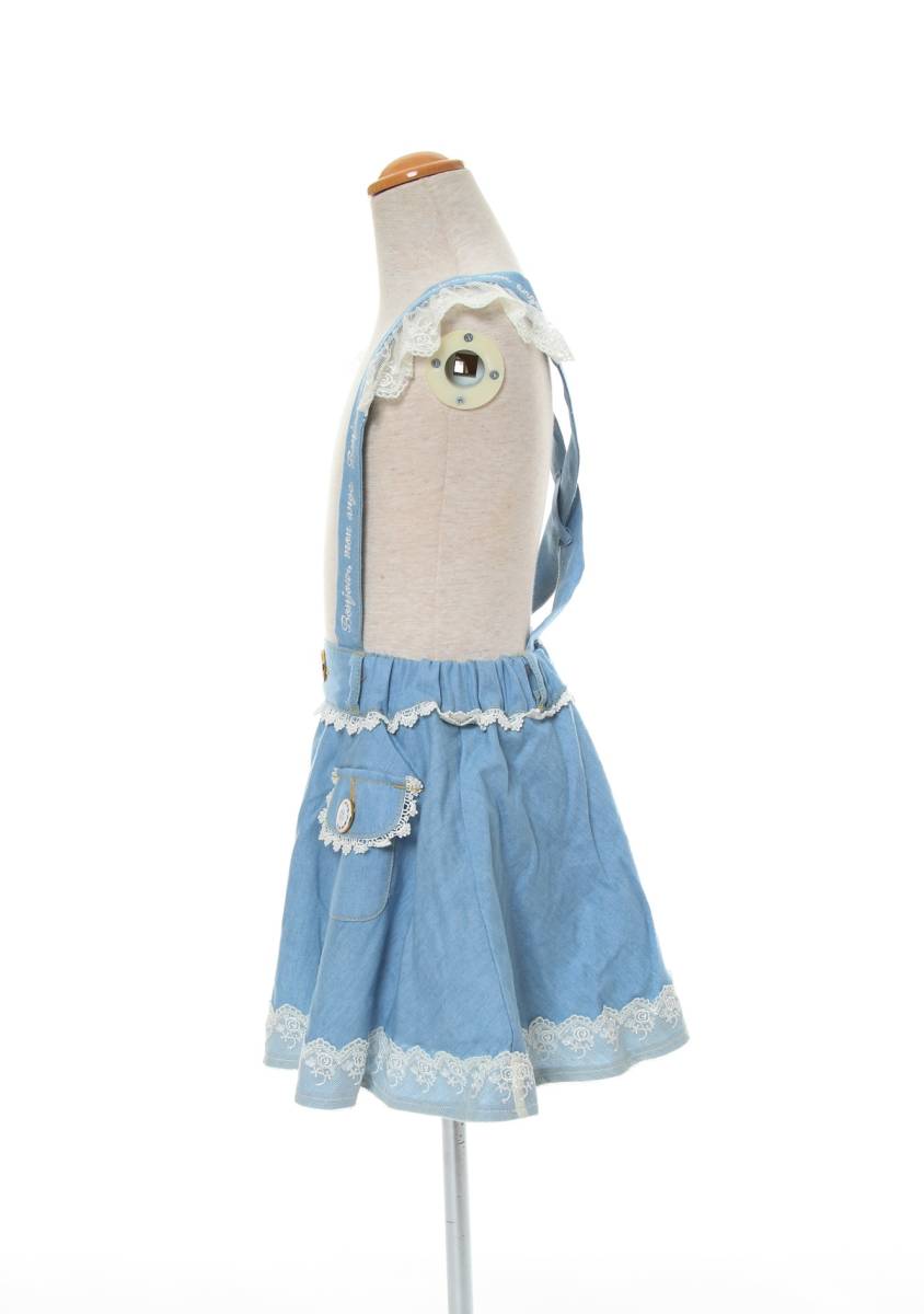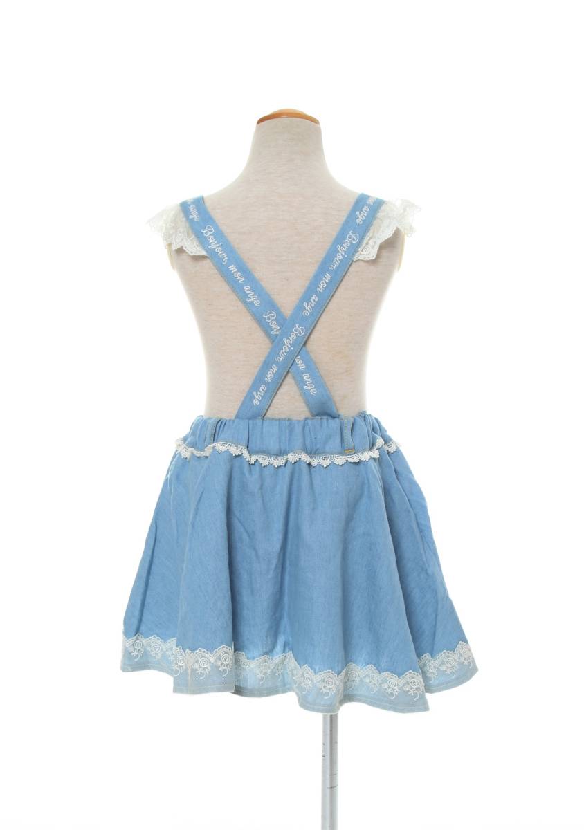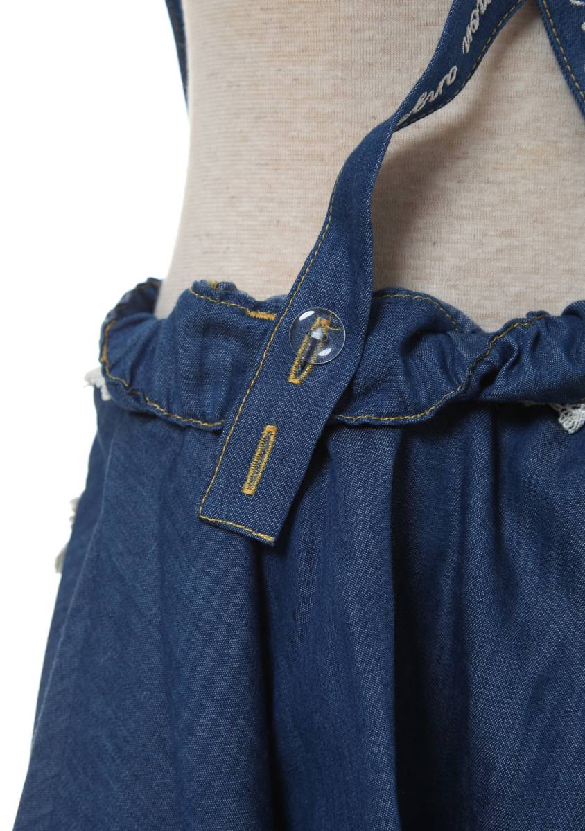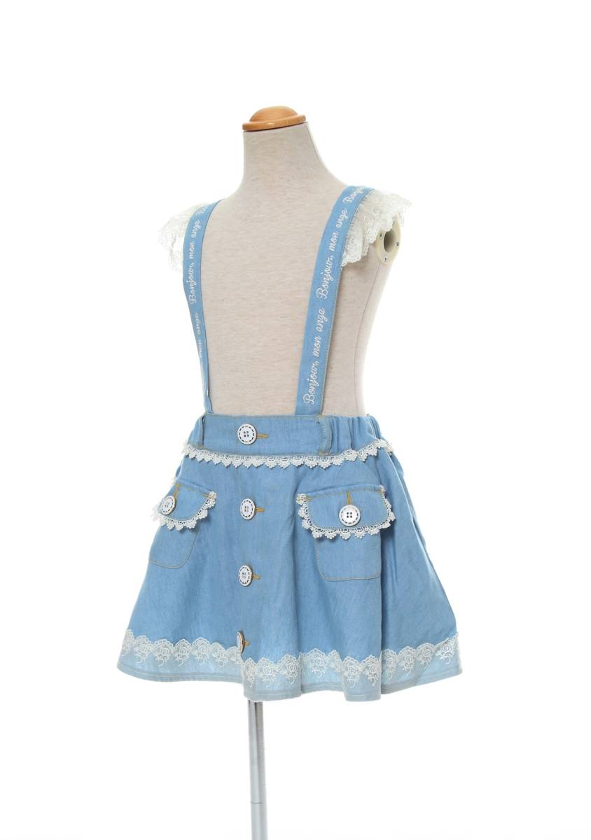 ロゴ刺繍が入ったサス付デザインのデニムのスカパンです。