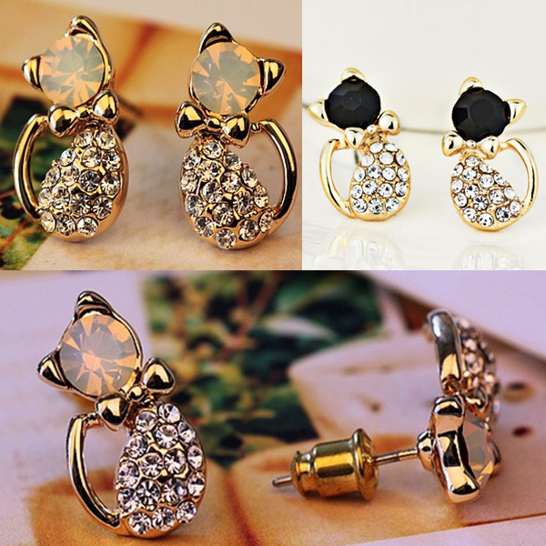 キラキラした高品質ラインストーンを一杯にちりばめたエレガントで美しい猫モチーフのピアスです。