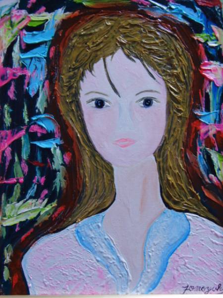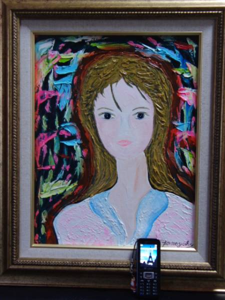 ≪国美協≫TOMOYUKI・友之、『見つめる女性』、油彩画、F6号:40,9×31,8cm、油絵、新品高級油彩額付、一点物、直筆サイン・真作保証付