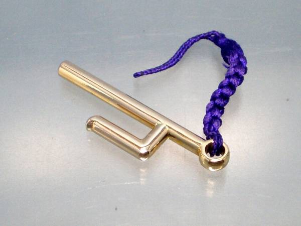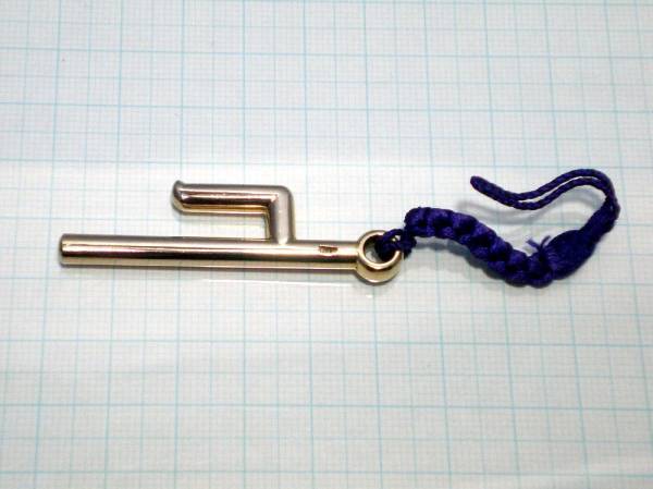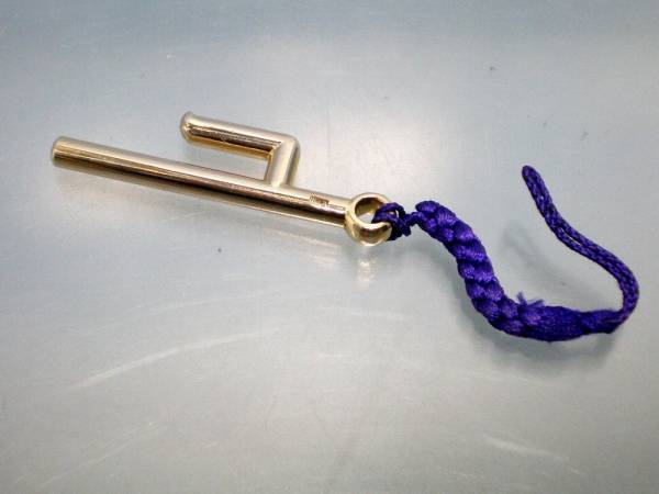 十手のデザインでサイズは実寸で約横14mm×縦52mmで重量19.6g(紐を除く)です。