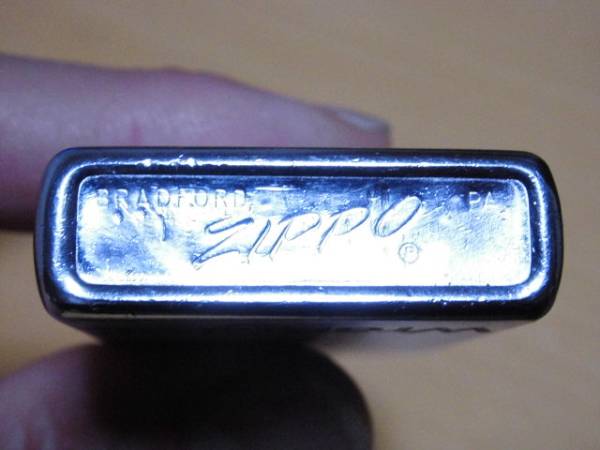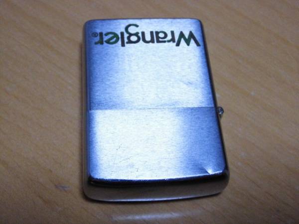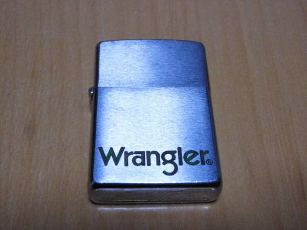 | 上蓋に少しへこみがあります。Wranglerの塗装にハガレがあります。 日本のファッション業界にとって1970年代は、ジーンズ旋風が巻き起こった時代でした。その風をいち早く読み取ったヴァンヂャケットは1971年、アメリカのジーンズ・ブランド「Wrangler」の日本国内での販売権を獲得し、商社や紡績会社と共同出資でラングラー・ジャパンを設立します。 設立間もない同社は、「Kent」の成功を踏まえ、「Wrangler」のロゴ入り「ZIPPO」(#200)を伊藤商事(株)に1,000個発注します。ノベルティとして問屋や販売店に配付するためでした。 | ![]() このことは、配付先の問屋や販売店に強い印象を植え付け、「Wrangler」の市場開拓に大きく貢献していきます。 しかも、思わぬ副作用も……。配付先の問屋や販売店から「ZIPPO」を取り扱いたいとの依頼が起こり、「ZIPPO」の販路拡大にもつながったのです |